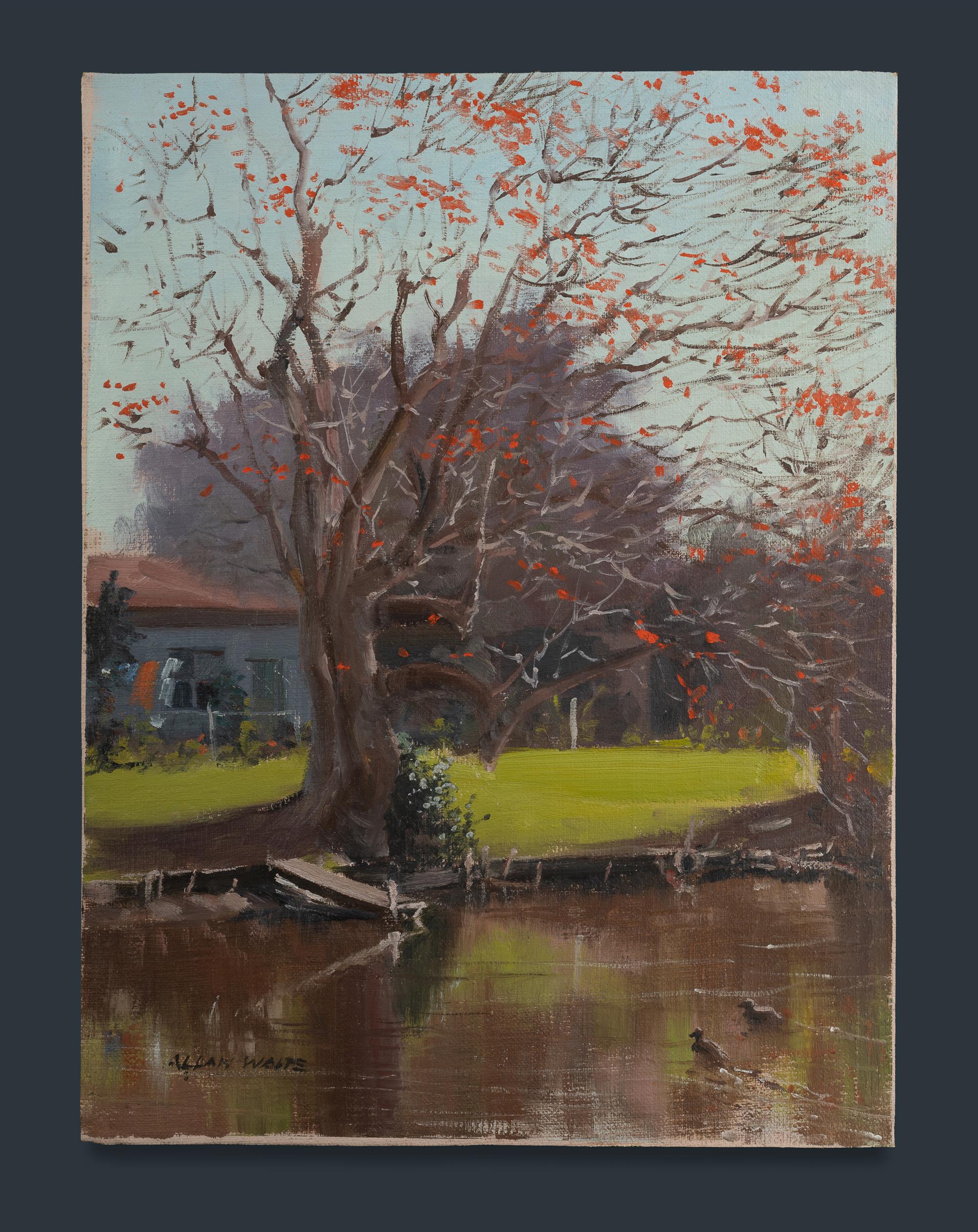 WAITE, Allan (1924-2010) 'The Coral Tree' Signed lower left; titled and inscribed verso. Oil on Canvas on Board 40.5x30.5cm PROVENANCE: Family of the Artist.Estimate $80-150