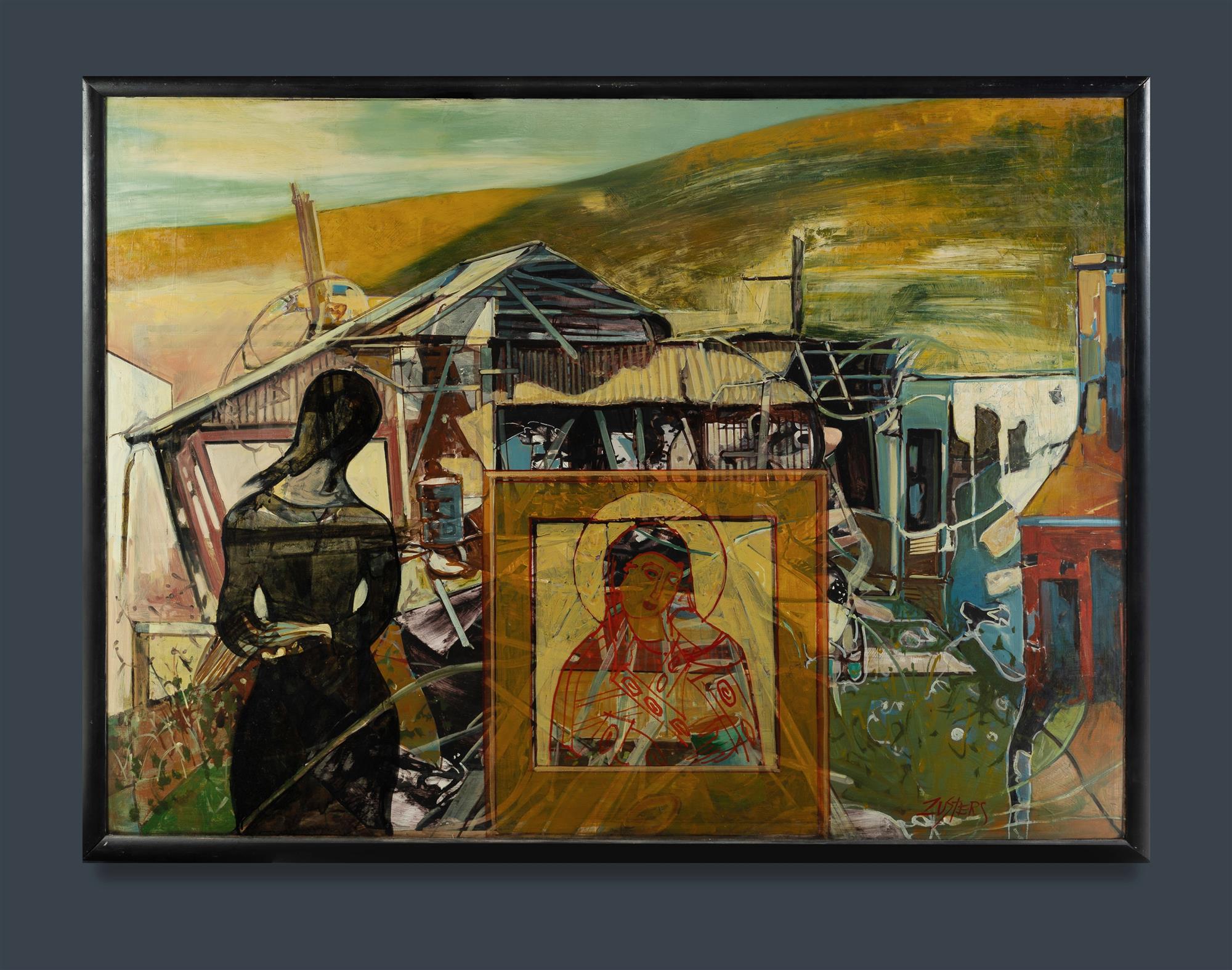ZUSTERS, Reinis (1919-1999) 'End of the Dream' Signed lower right; titled and inscribed verso. Oil on Board 119x162.5cm PROVENANCE: Laura Zusters, daughter of the artist.Estimate $1,200-2,500