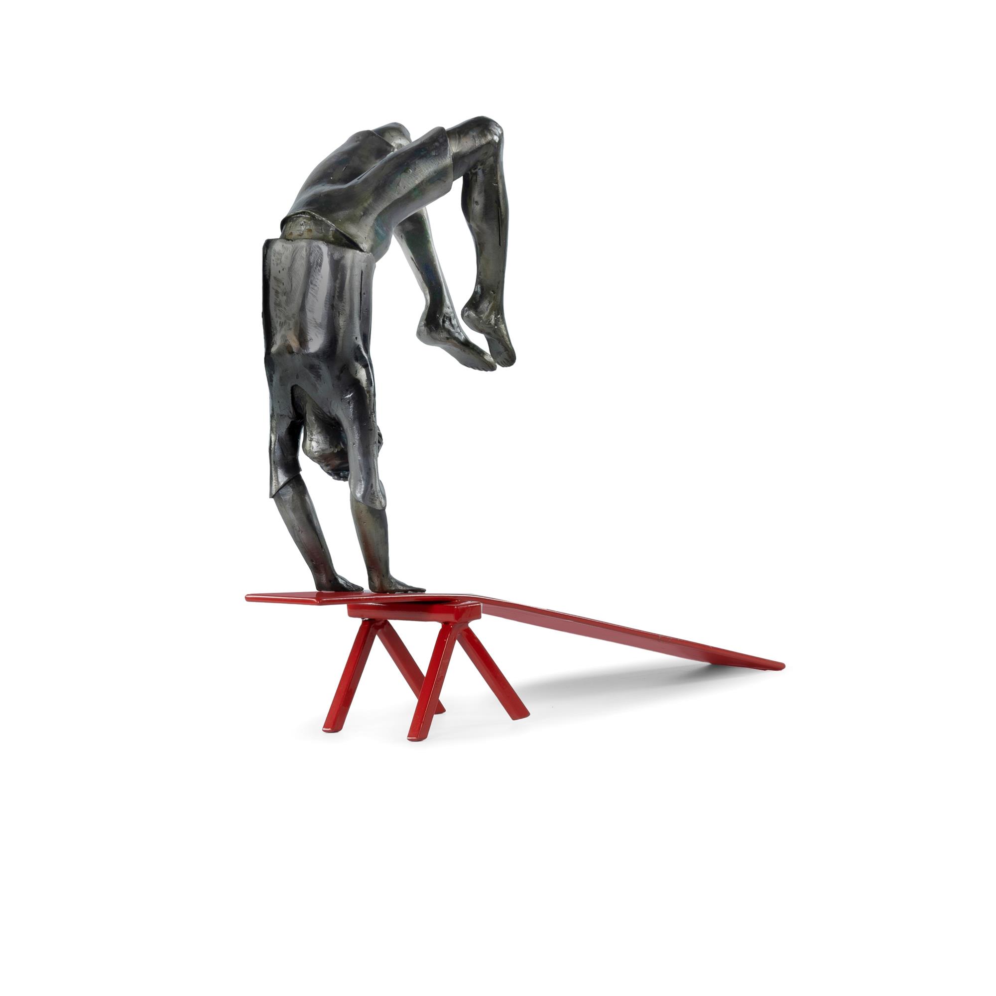 SEFFRIN, Nickolaus (German/Australian b.1931) 'Handstand' Initialled 'N' to base. Australian Galleries, Sydney, label to underside (#AG304173) Mild Steel with Powdercoating 43x49x12cm PROVENANCE: Adrien Seffrin, son of the artist.Estimate $800-1,500