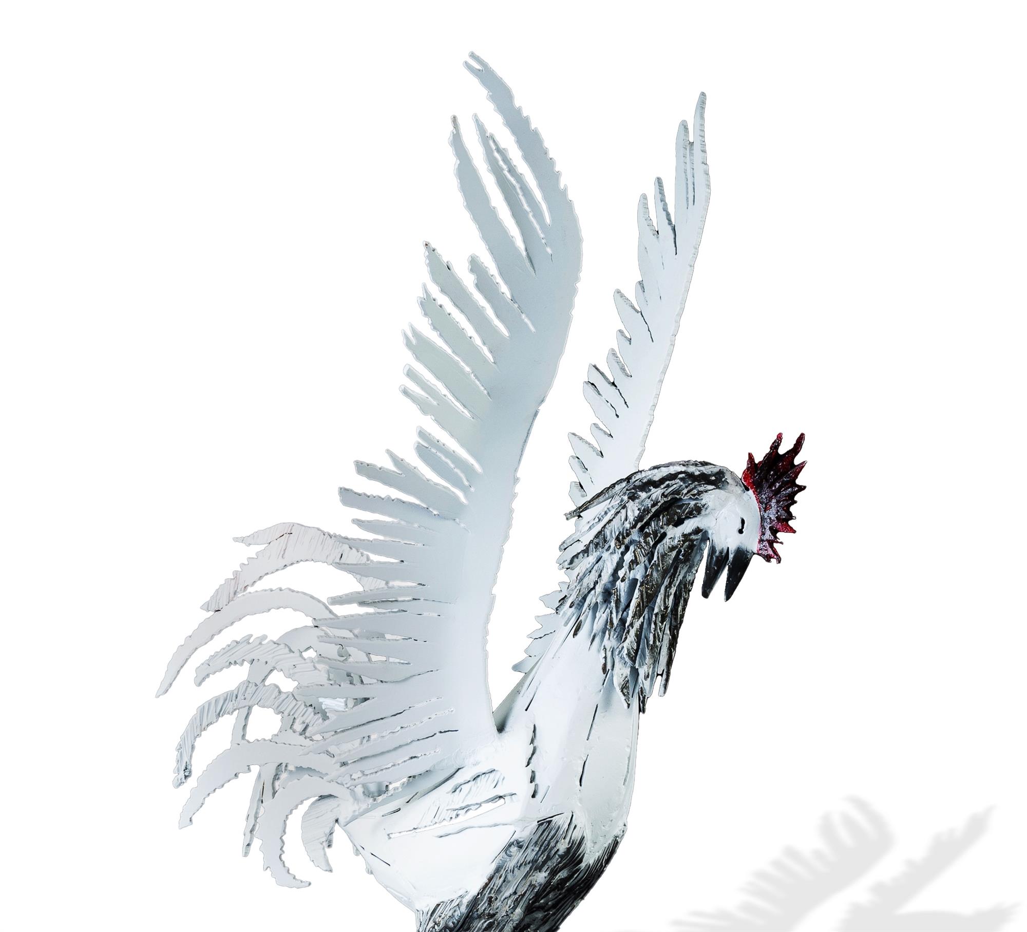 SEFFRIN, Nickolaus (German/Australian b.1931) 'Fighting Cock/Rooster' Initialled 'N' to base. Mild Steel with Powdercoating & Applied Colour 78x38x46cm PROVENANCE: Adrien Seffrin, son of the artist.Estimate $800-1,500