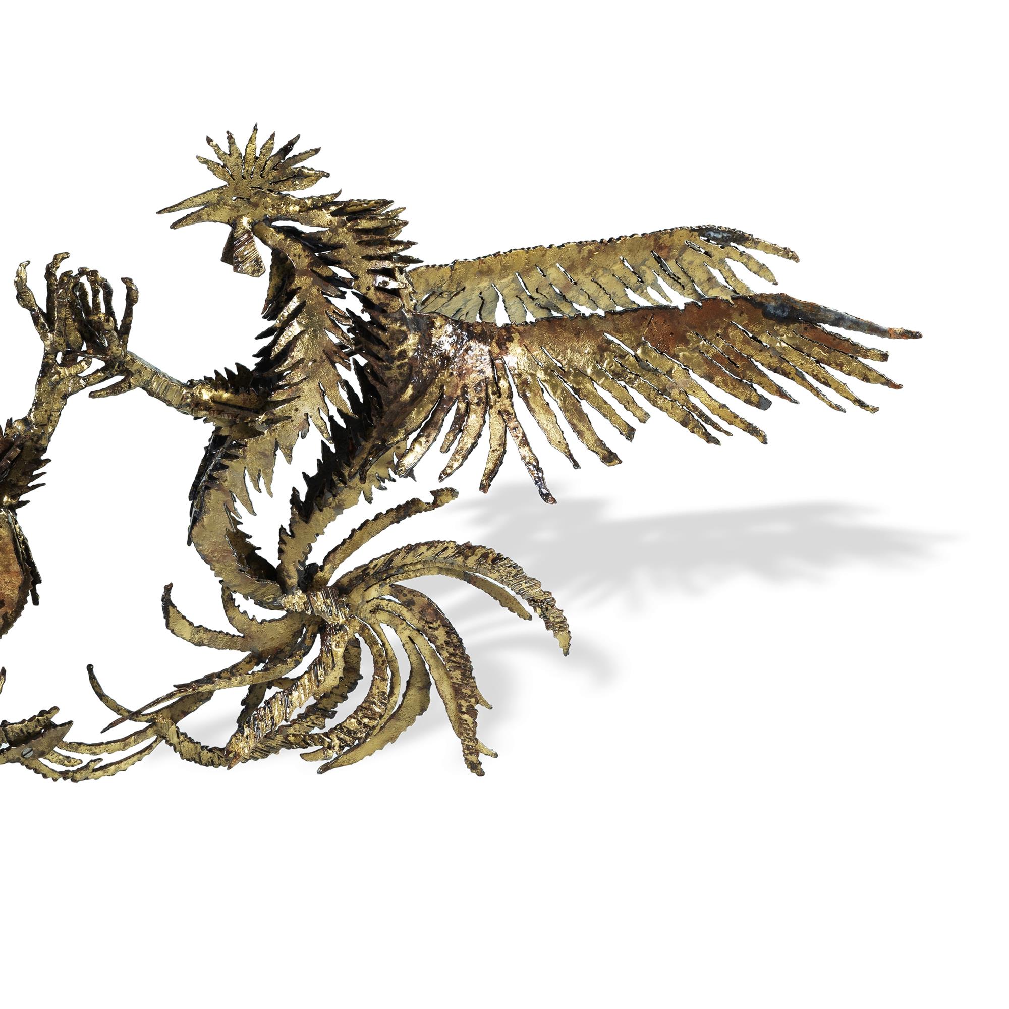 SEFFRIN, Nickolaus (German/Australian b.1931) 'Fighting Cocks' Initialled 'N' verso. Note: this sculpture is intended to hang from one or two fixed points. Mild Steel with Applied Bronze Finish 75x100x43cm (approx.) Weight 10kg (approx.) PROVENANCE: Adrien Seffrin, son of the artist.Estimate $1,000-1,800