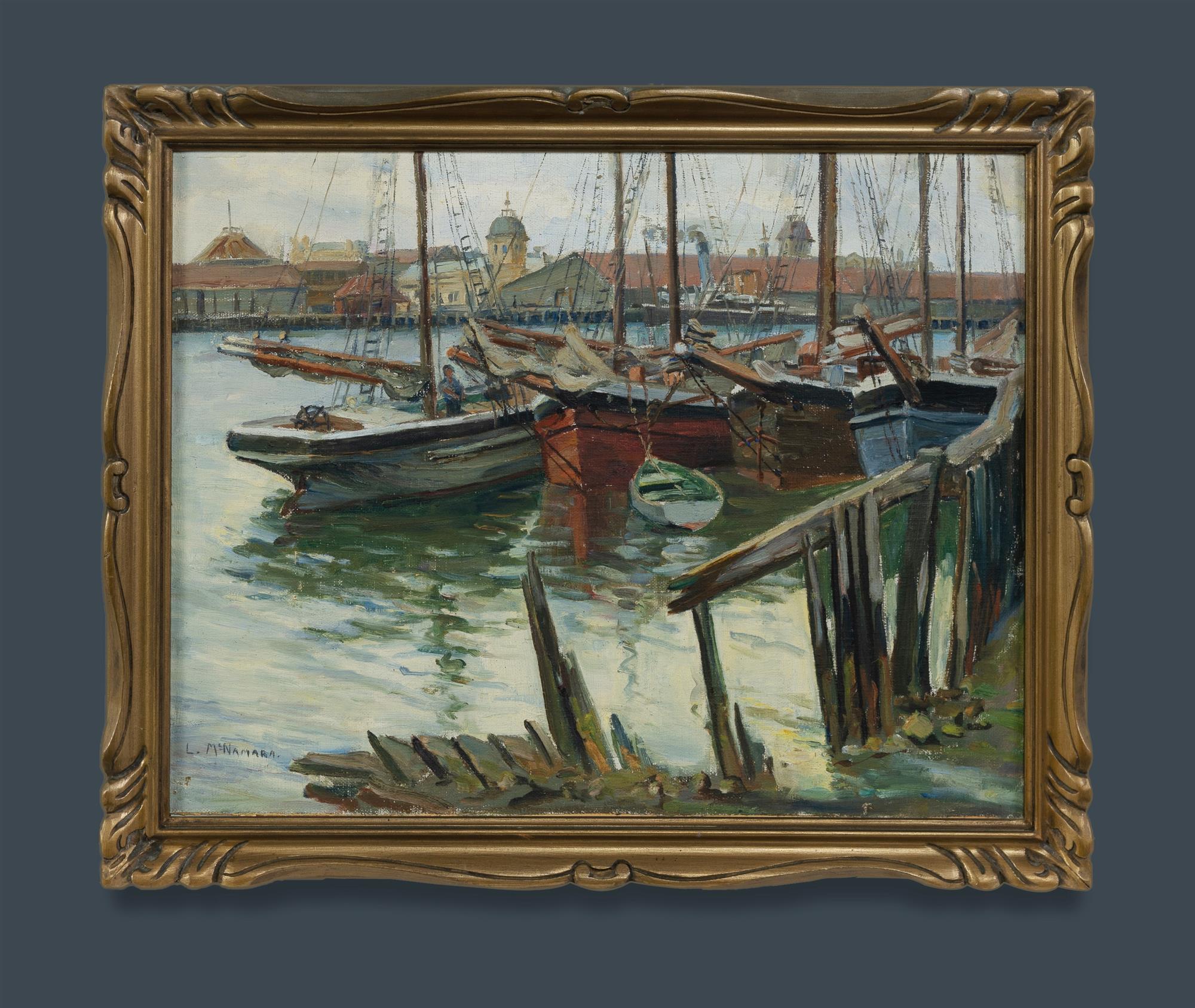 McNAMARA, Leila Constance (1894-1973) 'Ketches, Port Adelaide' Signed lower left. Oil on Canvas on Board 31x40cm PROVENANCE: Estate of Mary Beatrice Hoyle, niece of the artist.Estimate $300-600