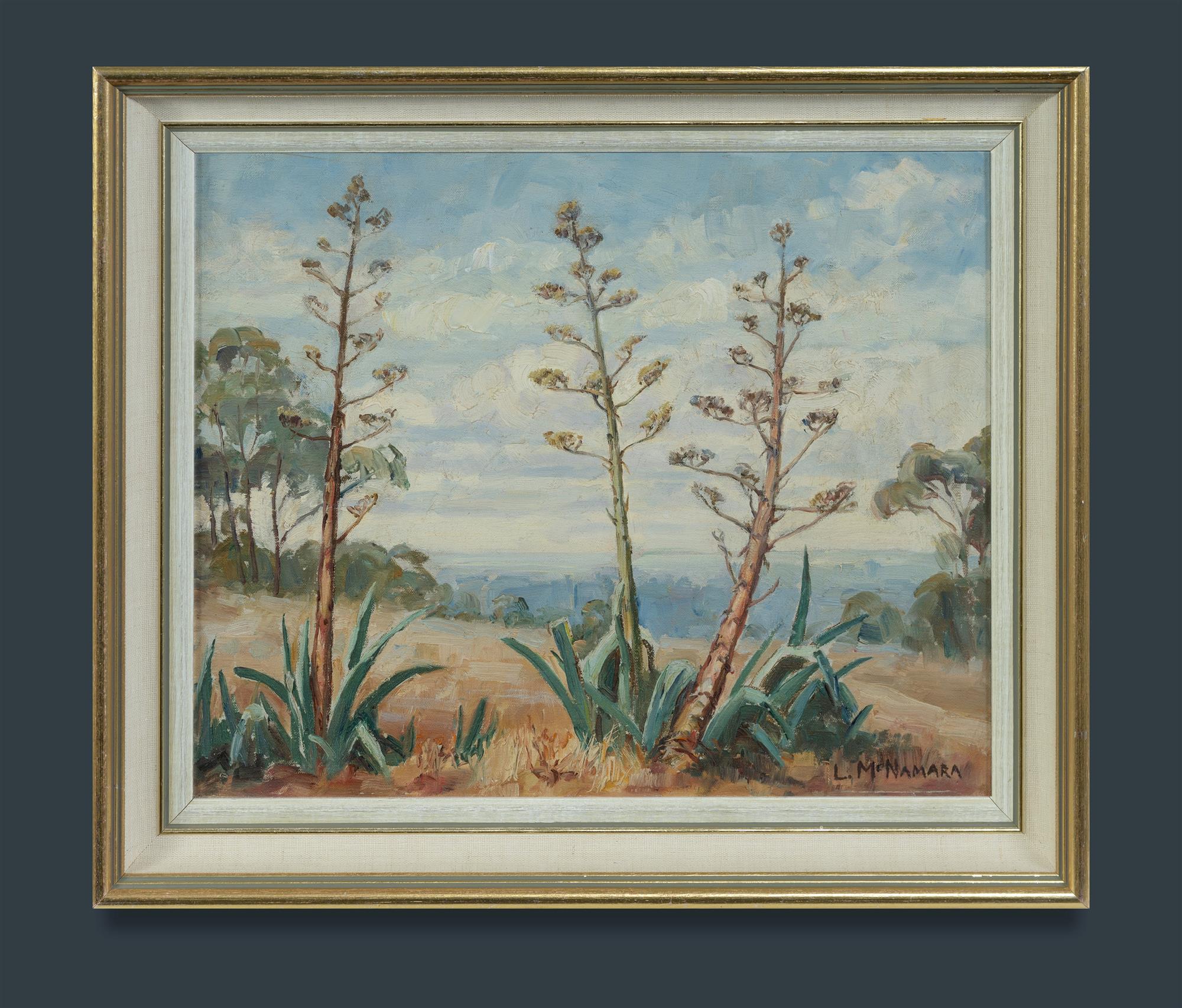McNAMARA, Leila Constance (1894-1973) Flowering Agaves Signed lower right. Oil on Board 32x39cm PROVENANCE: Estate of Mary Beatrice Hoyle, niece of the artist.Estimate $300-600