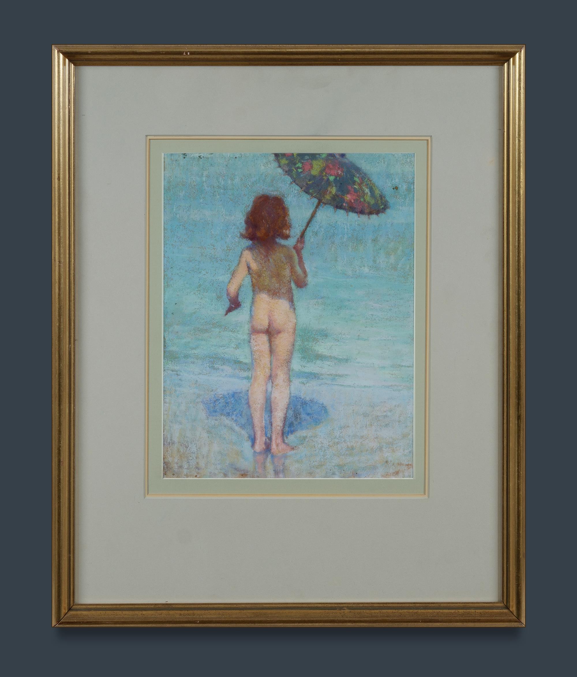 Artist Unknown Girl with Umbrella on Beach Signed indistinctly lower right. Pastel 33x25cmEstimate $100-300