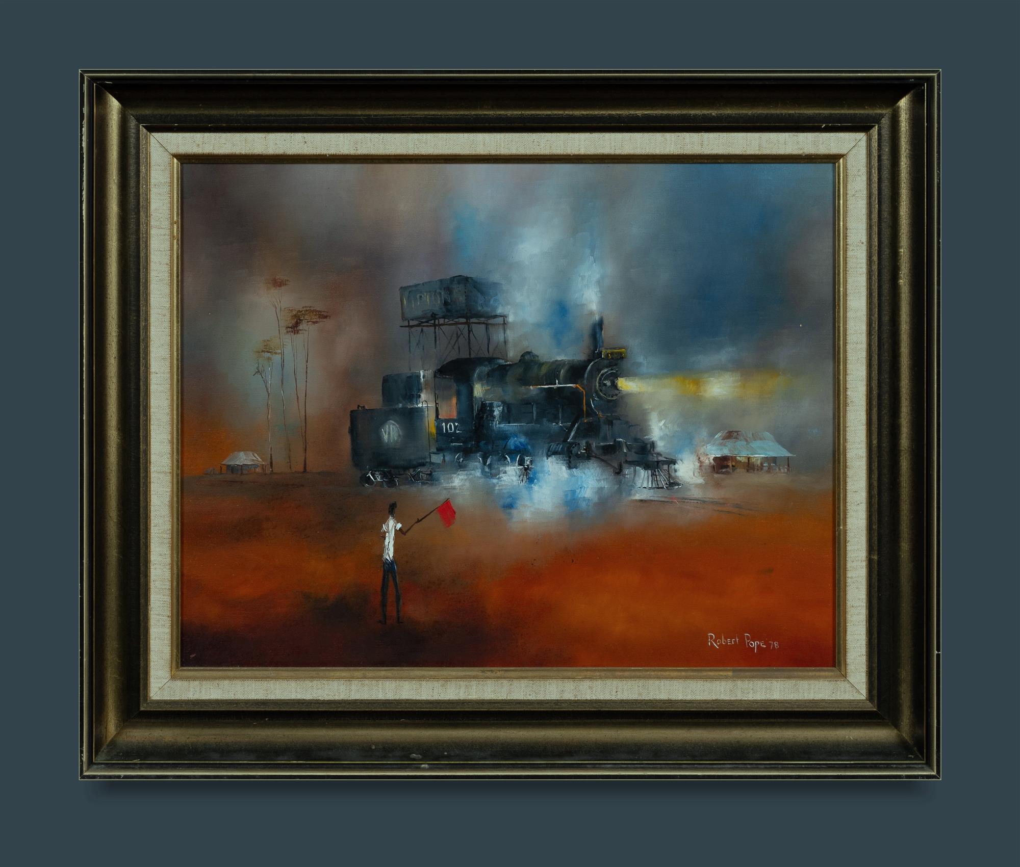 POPE, Robert David (b.1939) 'Steaming Up,' 1978. Oil on Canvas 34x44cm PROVENANCE: Estate Late Larry Shaw, Cowra NSW.Estimate $150-300
