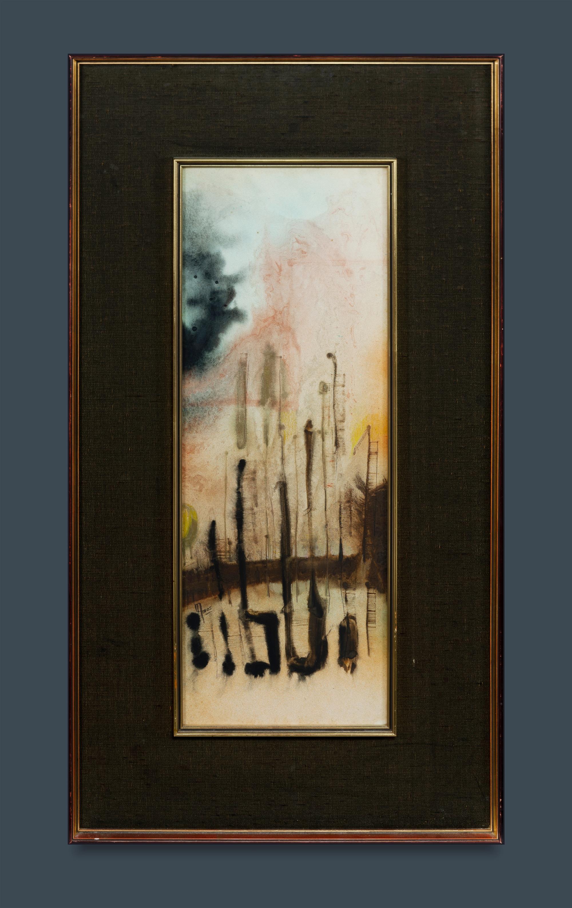 AMOS, Irene (1927-2012) Untitled Remnants of original artist's label verso. Mixed Media on Paper 55x20cm PROVENANCE: Estate Late Carl Segal, Sydney.Estimate $100-200