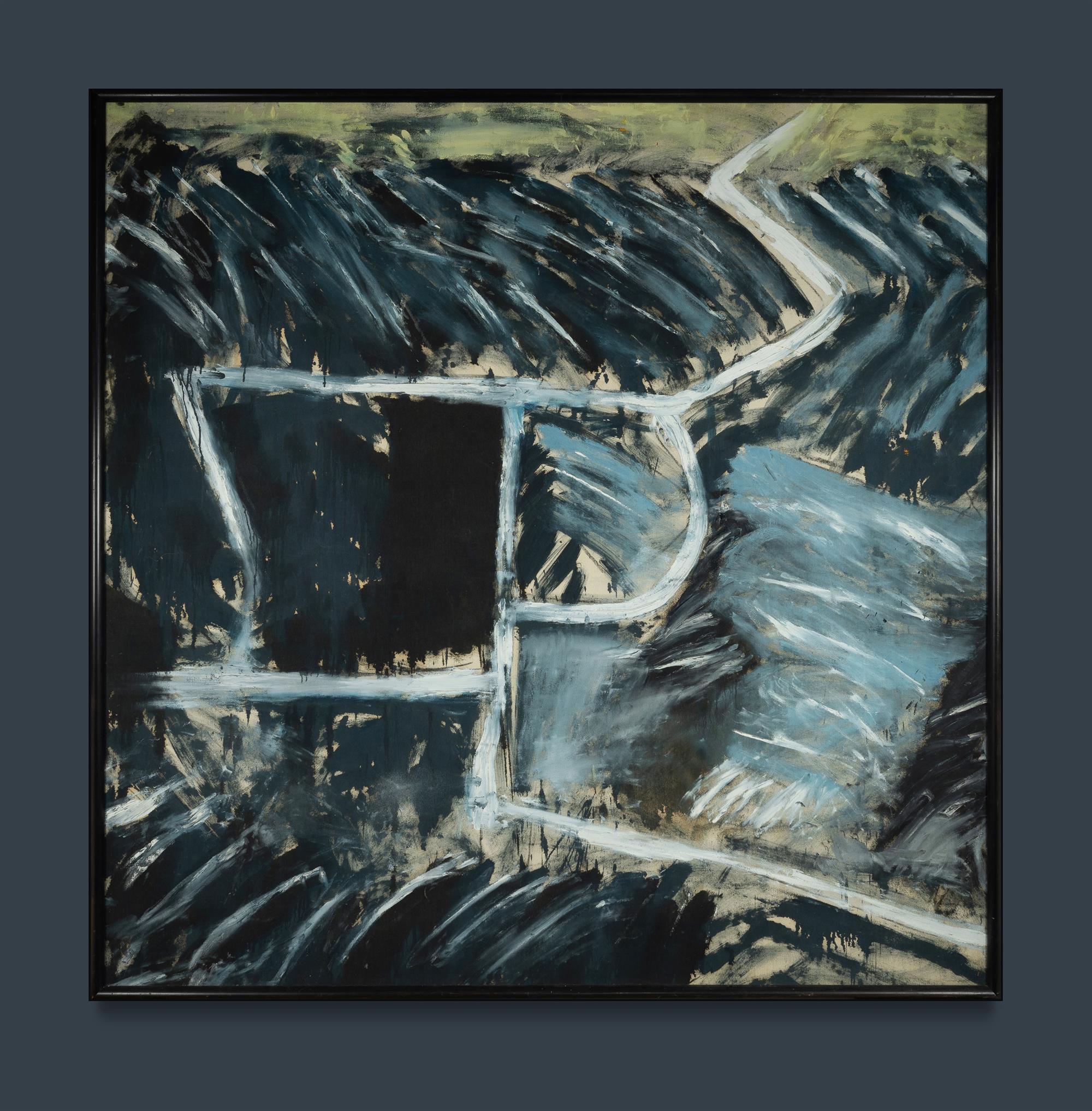 THROSBY, Jonathan (b.1957) 'Open Cast Coal Mine, Leigh Creek, South Australia,' 1987. No signature apparent. Oil on Canvas 166x166cm
