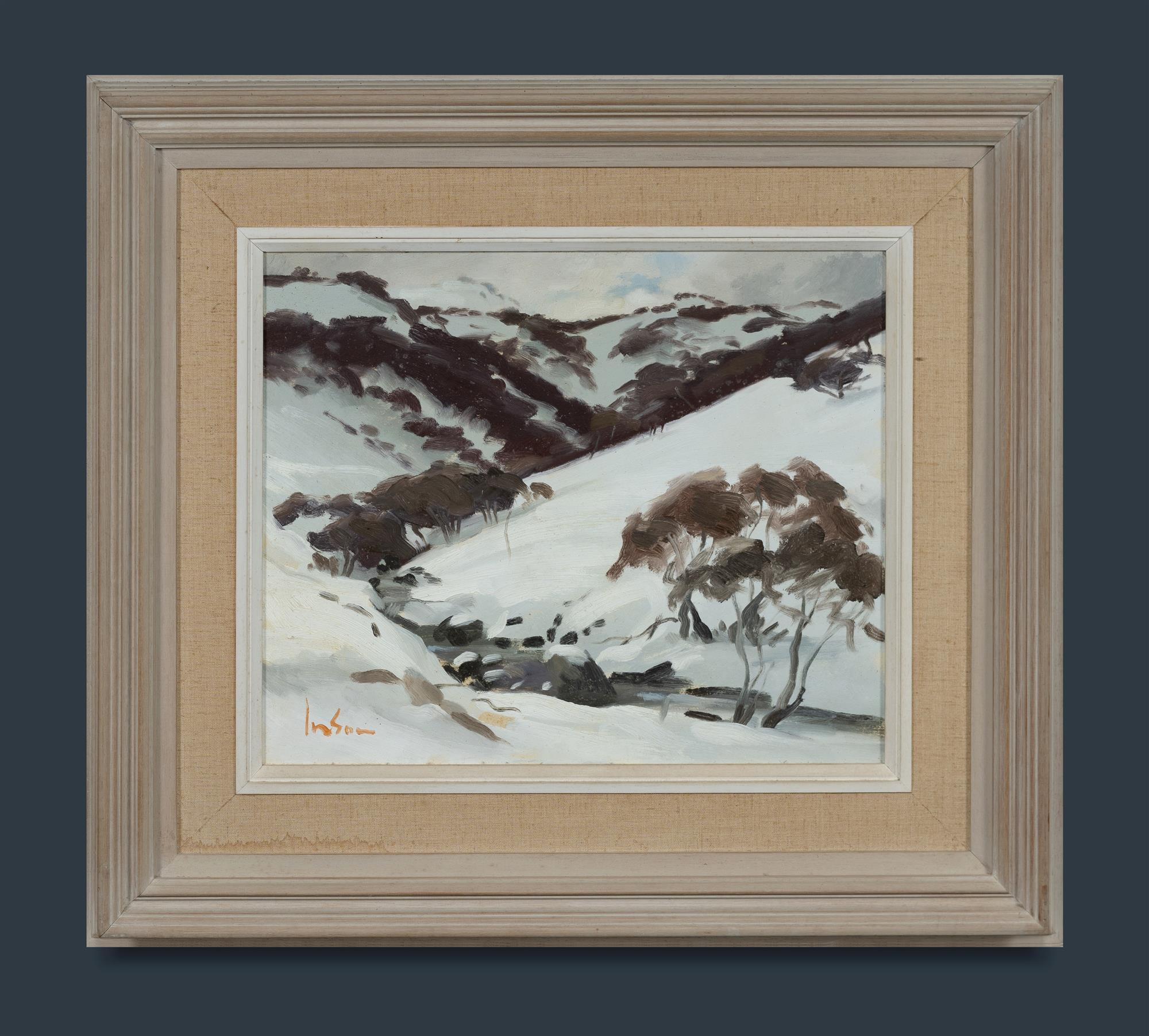 INSON, Graeme (1923-2000) 'Under Kosciuszko [NSW]' 1974. Oil on Board 37x44.5cmEstimate $250-400