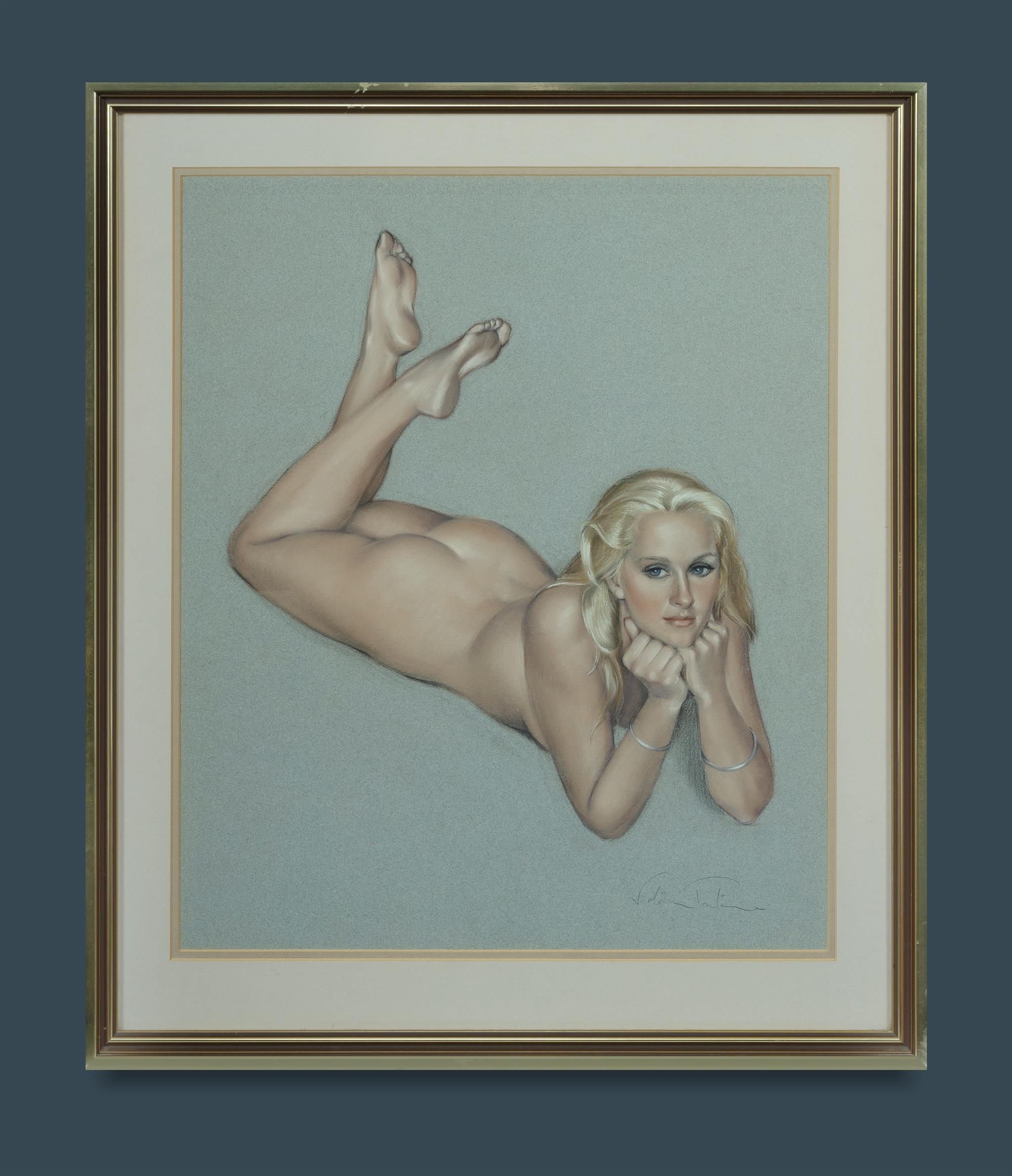 FONTAINE-WOLF, Victoria (b.1945) Nude Study, c.1982. Ex Barry's Art Gallery, Surfers Paradise, QLD (label and original invoice attached verso) Pastel 62x52cmEstimate $100-300