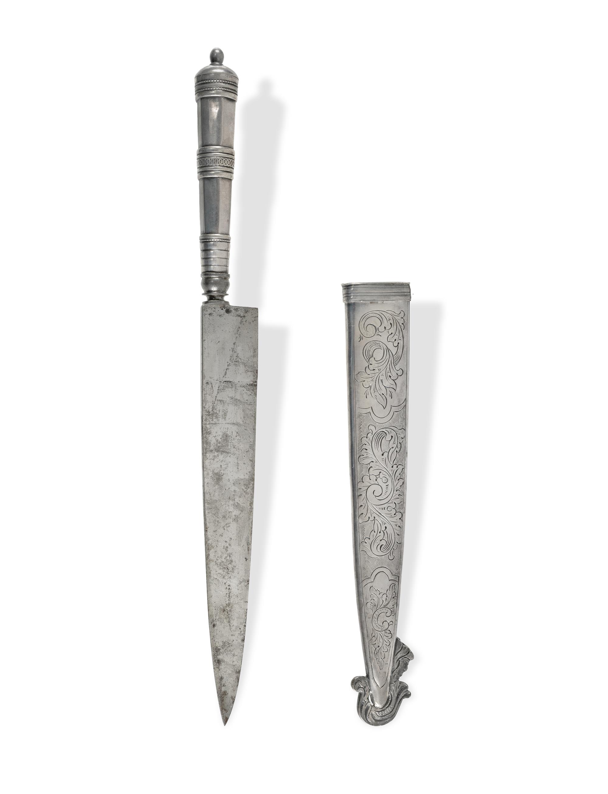 19th C Gaucho Knife Silver scabbard and hilt. (L33cm) PROVENANCE: From the collection of the late Warren MallardEstimate $250-450