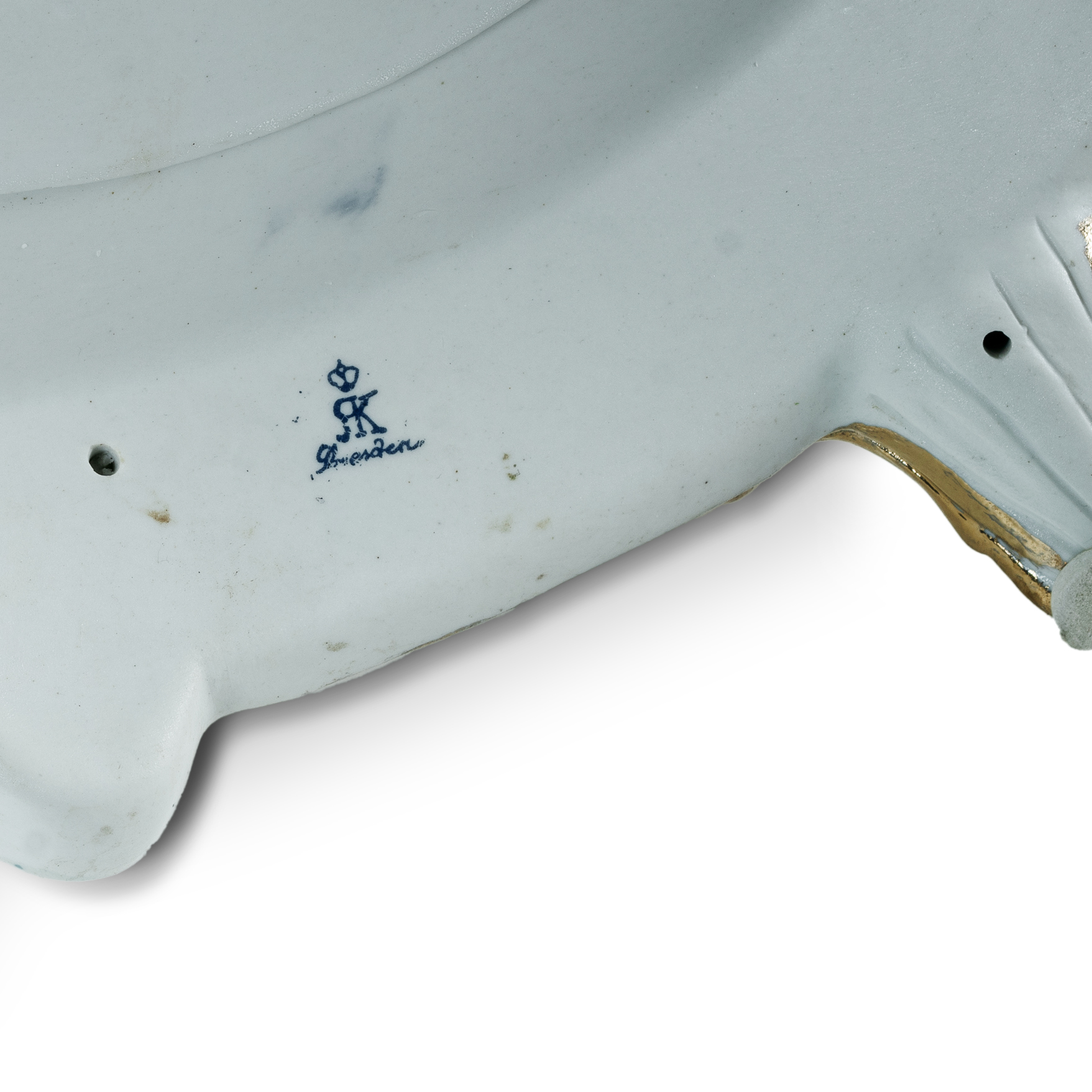 20th C Porcelain Figure Group Young courting couple with lap dog. Marked 'Dresden' to base. (H31.5cm)Estimate $200-400