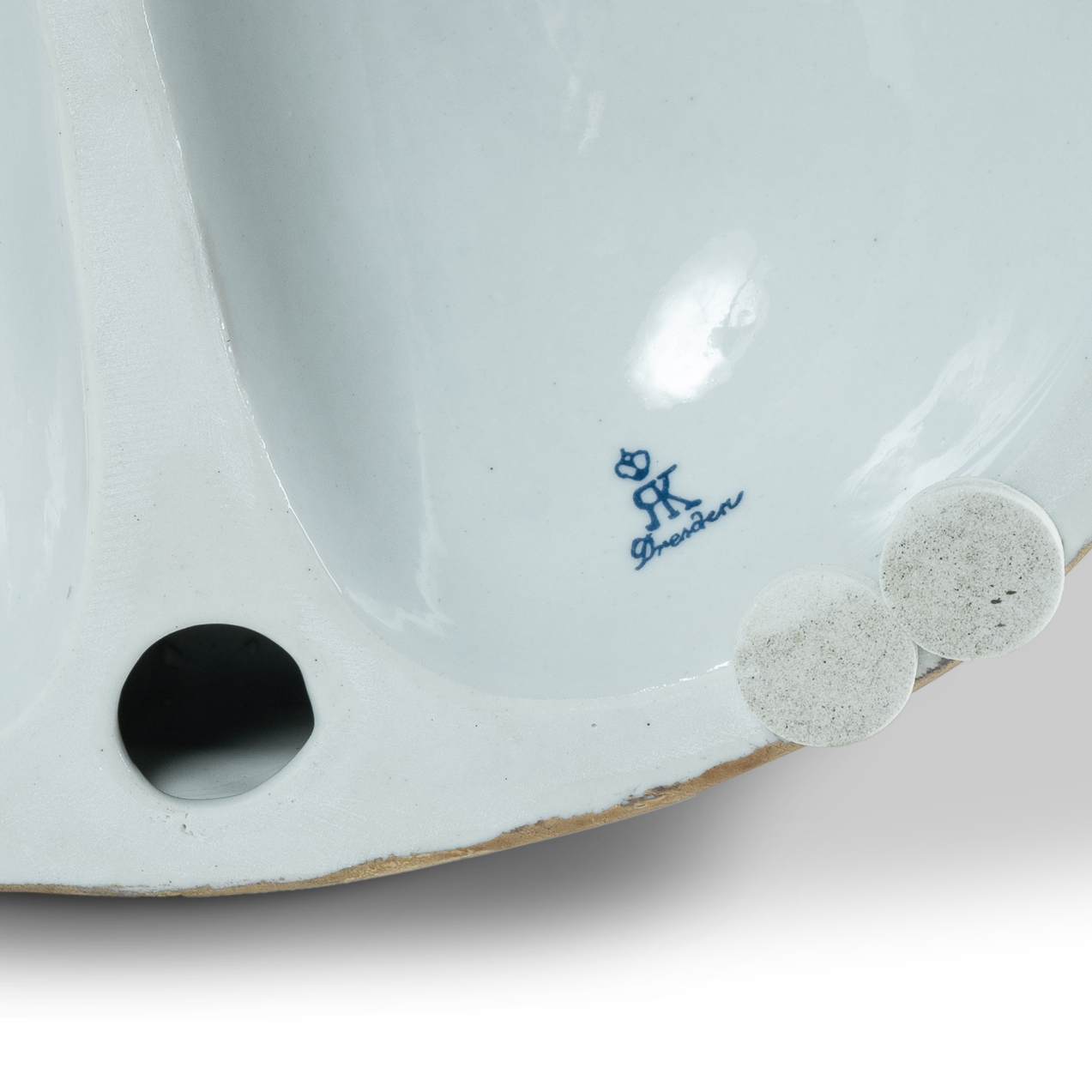 20th C Porcelain Figure Group Two young women with a floral basket. Marked 'Dresden' to base. (H26cm)Estimate $200-400