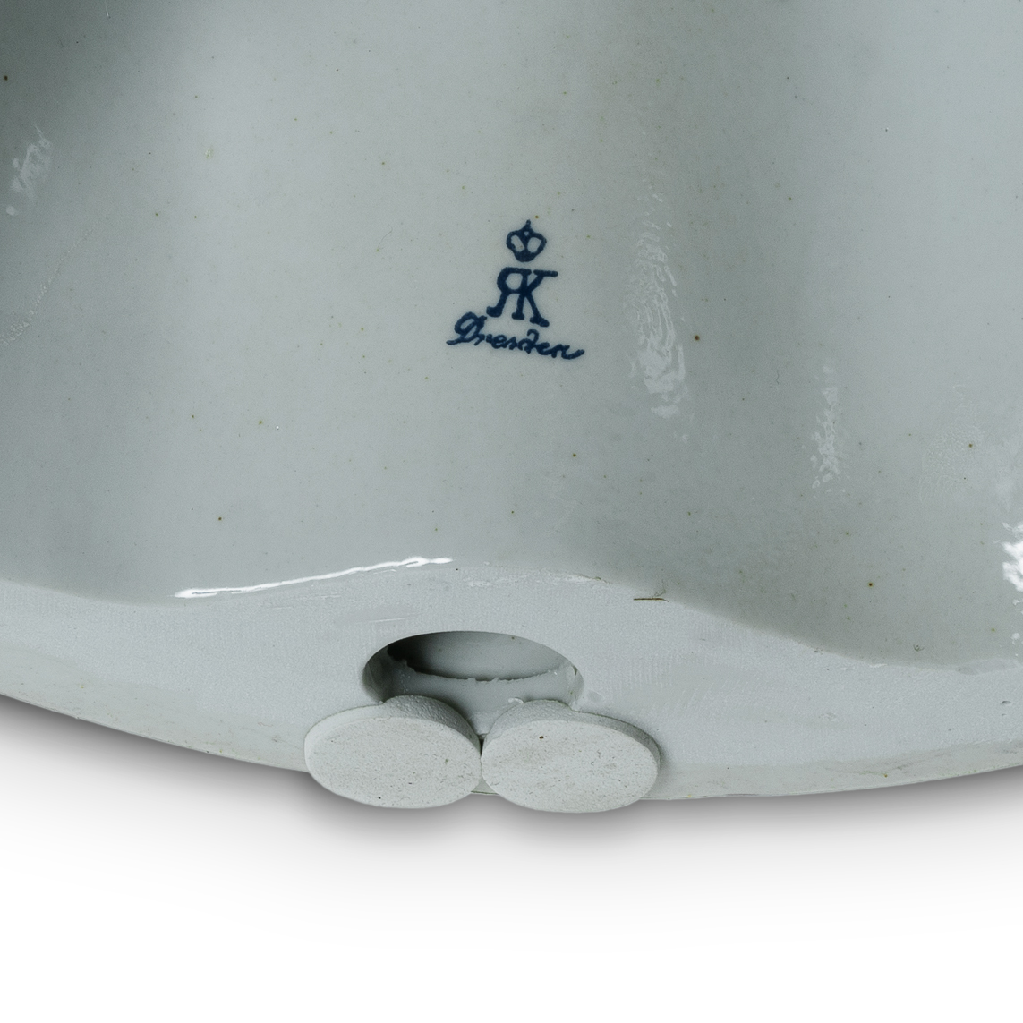 20th C Porcelain Figure Group Two young maidens on a rocky outcrop, with doves. (H49cm)