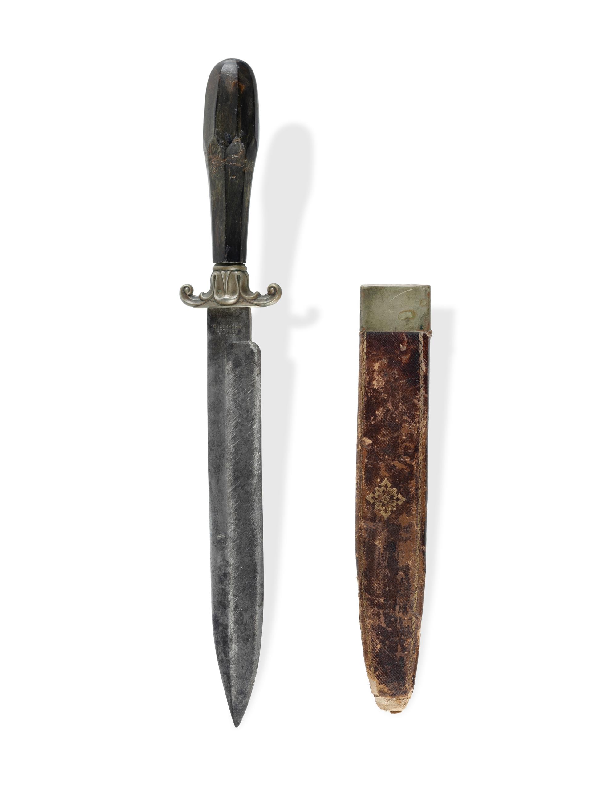 Early 19th C Spear Point Bowie James Rodgers, Sheffield. Pressed horn faceted hilt, hollow ground blade. (L35.5cm)Estimate $200-400