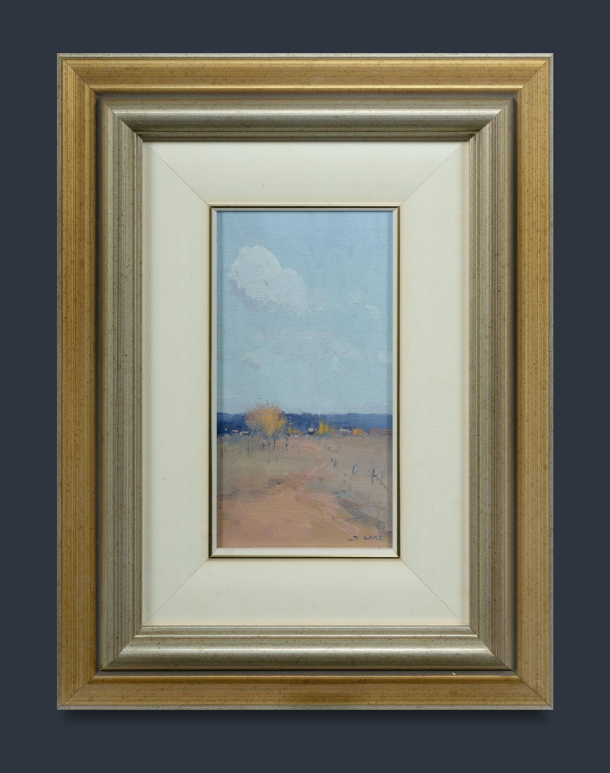 LAKE, David (b.1967) 'Blue and Gold - Perthville' Oil on Canvas on Board 21.5x11.5cmEstimate $70-120