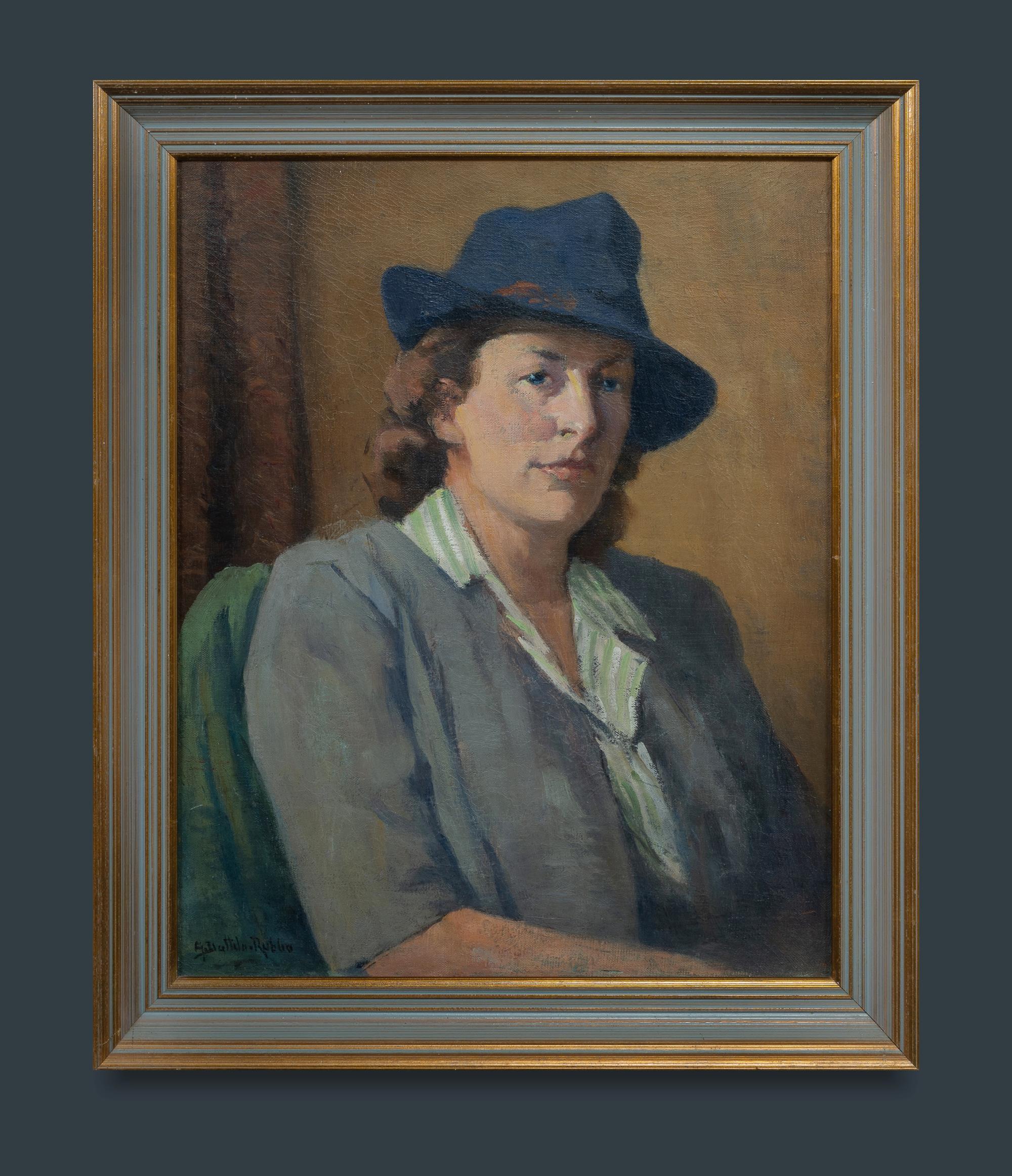 RUBBO, Anthony Dattilo (1870-1955) 'Woman in Blue Hat' Signed lower left. Artarmon Galleries, Sydney, label verso (#20513) Oil on Canvas 49x39cmEstimate $800-1,500
