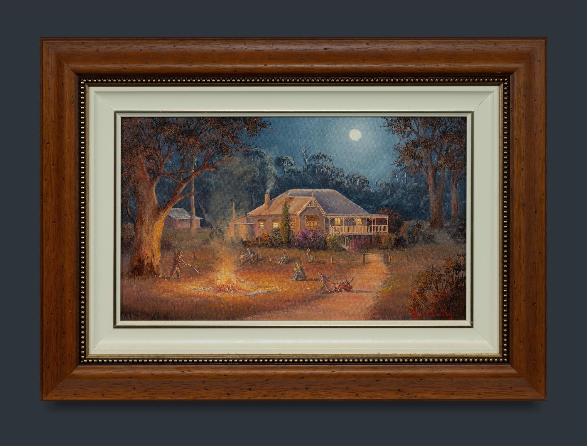 BRADLEY, John (b.1945) 'Country Bonfire,' 2009. Oil on Canvas on Board 25.5x43cmEstimate $200-400