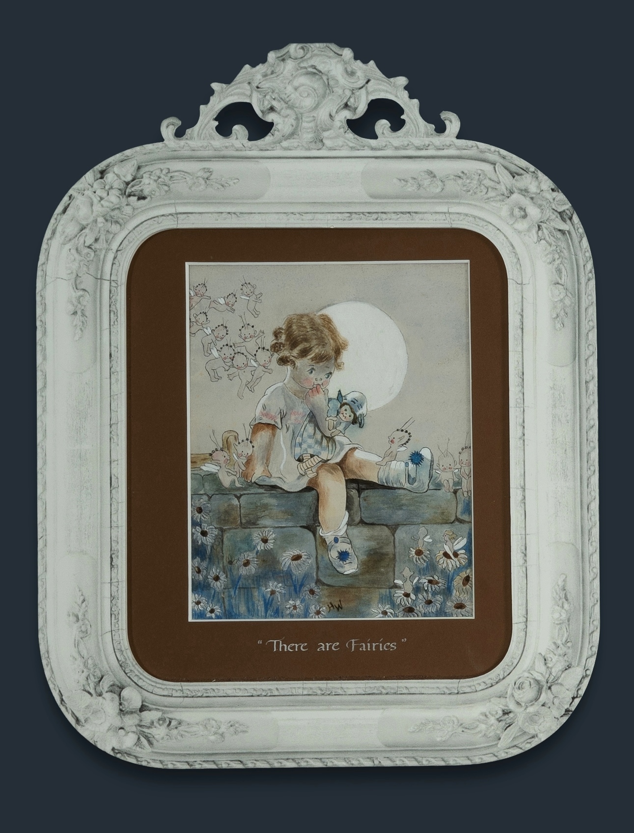 Manner of Mabel Lucie ATTWELL (British 1879-1964) Four Children's Illustrations 'On-dit', unsigned (13.5x29cm); 'There Are Fairies', initialled HW (18.5x14.5cm); Girl Cutting Hair, initialled HW (21x15cm); and An Early Encounter, initialled HW (20x28cm). W/Clr (4)Estimate $200-400