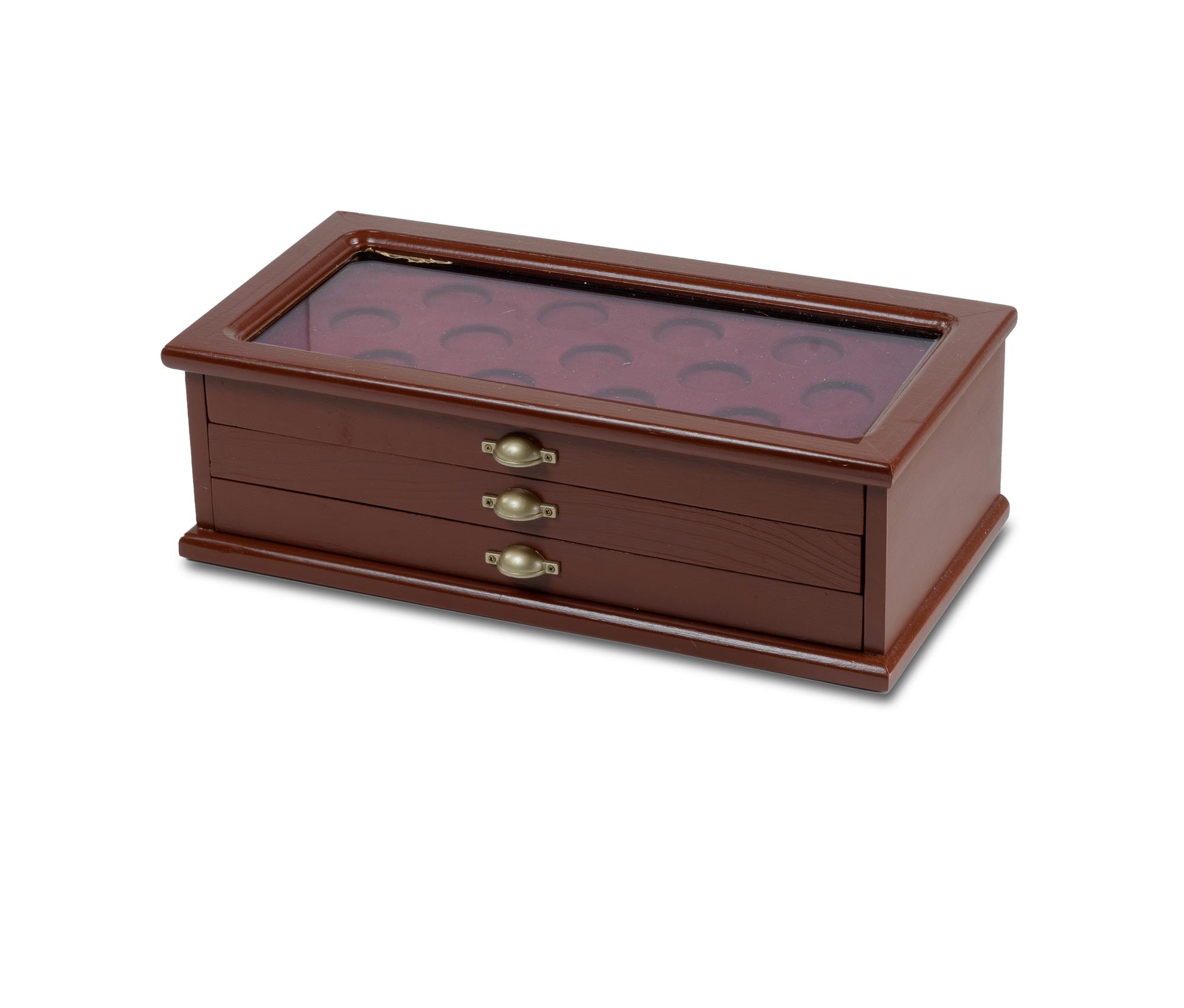 2 Coin Collector Display/Storage Cases Each with 3 drawers, each drawer with space for 13 coins. (H12cm L39cm D21cm)Estimate $50-100