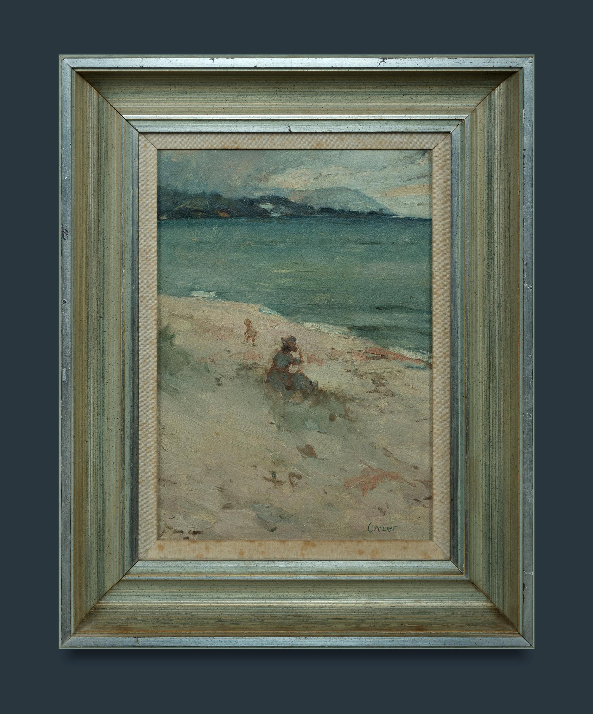 Attrib. Frank CROZIER, (1883-1948) Mother and Child on Beach Signed lower right. Oil on Board 29.5x20.5cmEstimate $300-500