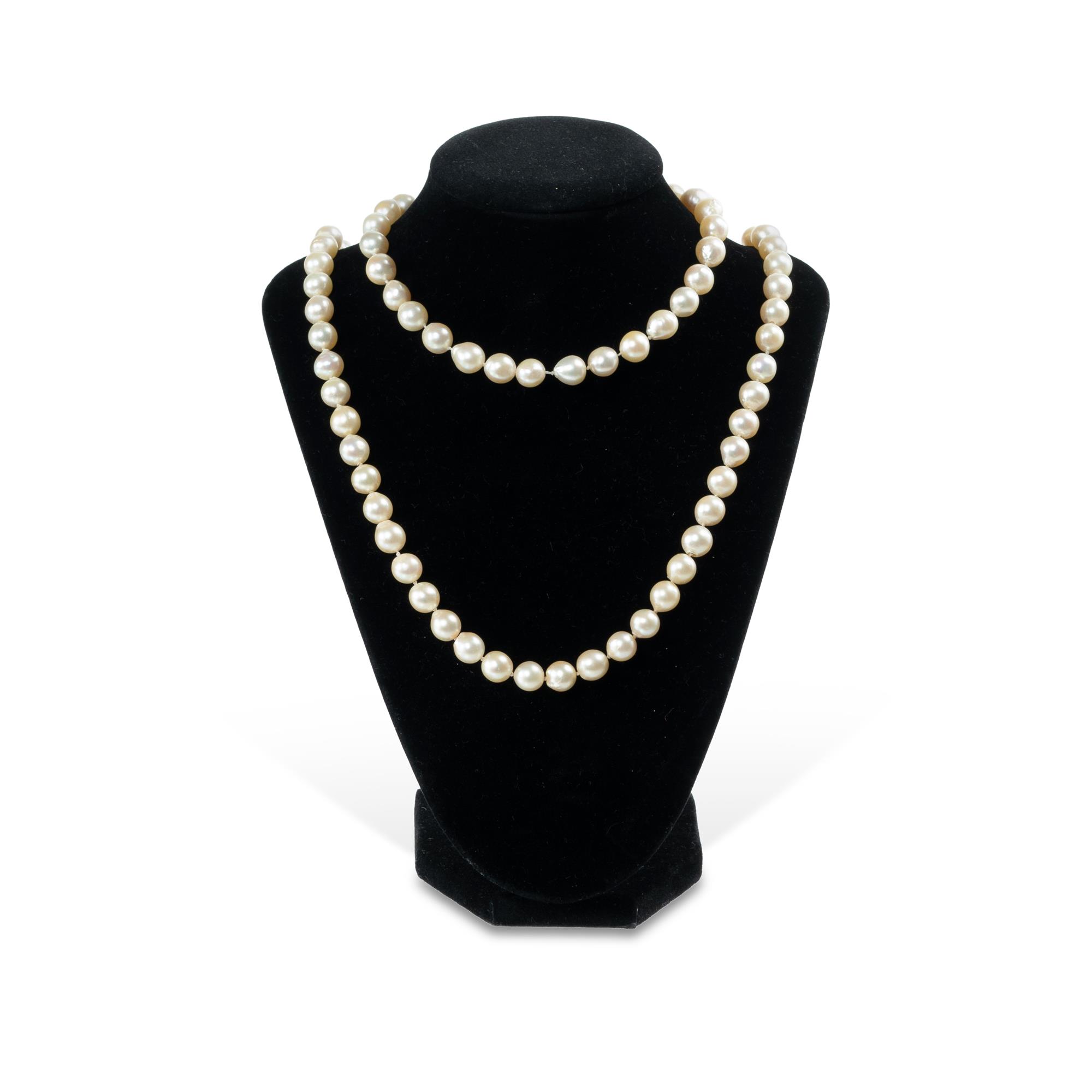 Cultured Pearl Necklace with Extension 8.5/9mm semi baroque cultured pearl necklace with extension. Both with 18ct yellow gold clasps. (32.5cm; 60cm)Estimate $300-500