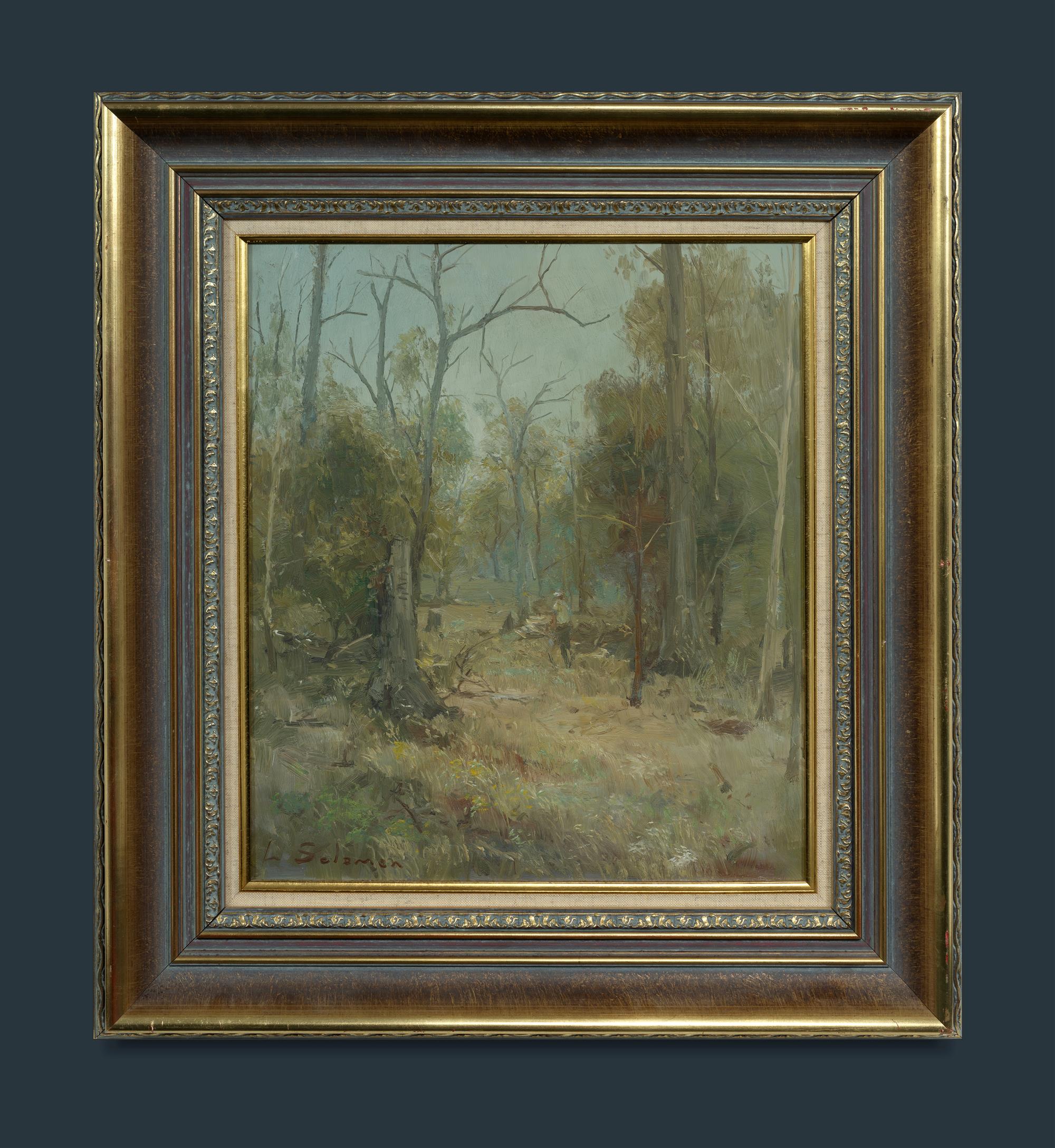 SOLOMON, Lance (1913-1989) 'Through the Bush' Oil on Board 45x39cm PROVENANCE: Leonard Joel, Melbourne, 20th August 1991 (lot 71); deceased estate, Sydney.Estimate $300-500