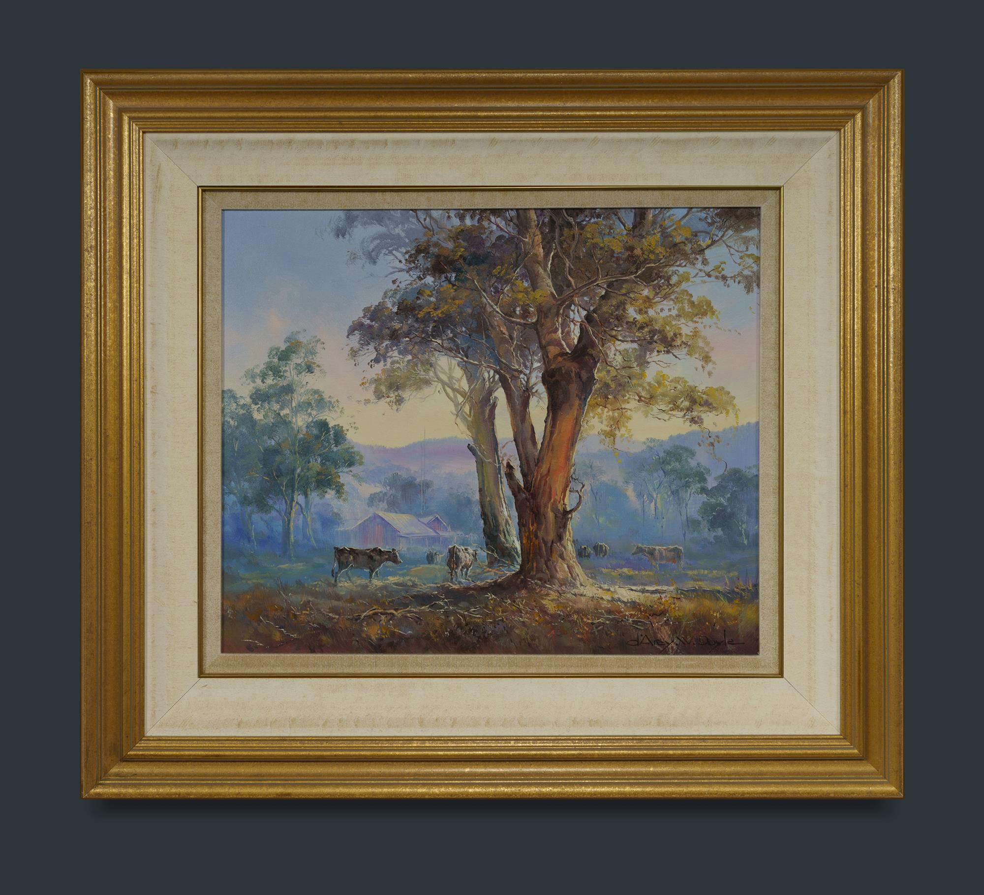 DOYLE, d'Arcy (1932-2001) 'Milking Time' Oil on Canvas on Board 50x60cm PROVENANCE: Davidson Auctions, Australian & International Art, 22nd March 2020 (lot 68); private collection, Sydney.Estimate $4,000-6,000