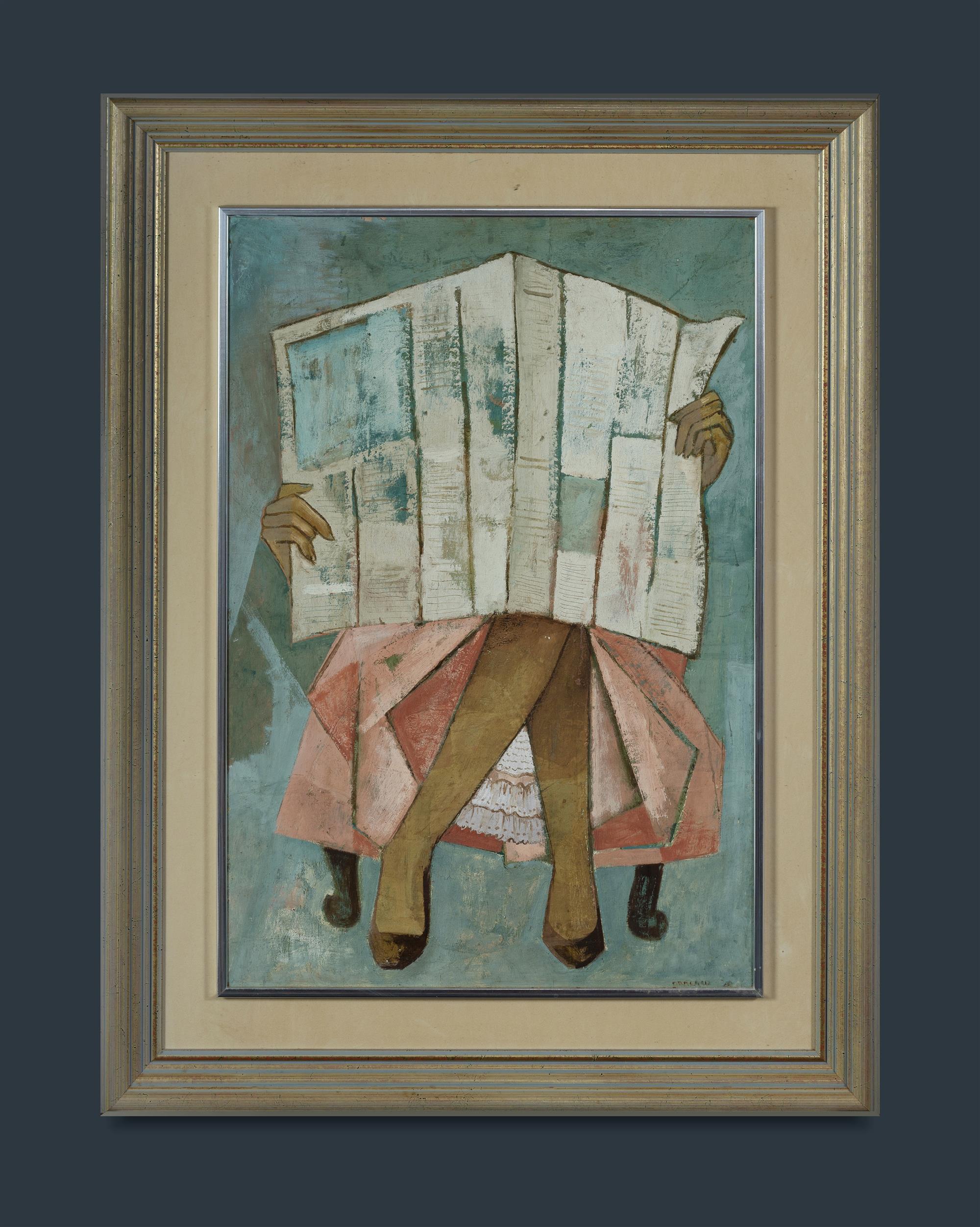 BRAUND, Dorothy (1926-2013) 'Behind the News' Signed lower right. Oil on Board 80.5x55cmEstimate $6,000-8,000