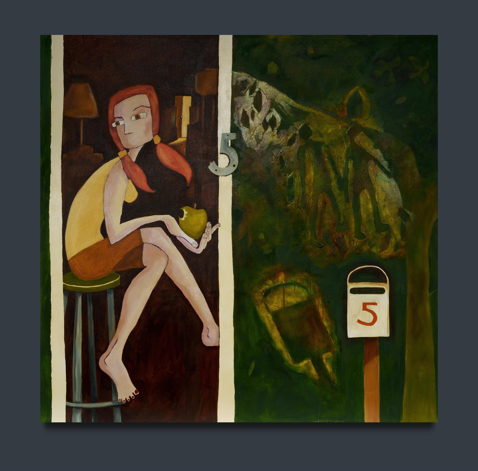 WALSH, Tricky (b.1974) '11am - waiting for the post,' 2005. Signed and dated lower right; inscribed with story verso. Acrylic on Canvas 150.5x154cm PROVENANCE: Private collection, Adelaide.Estimate $300-500