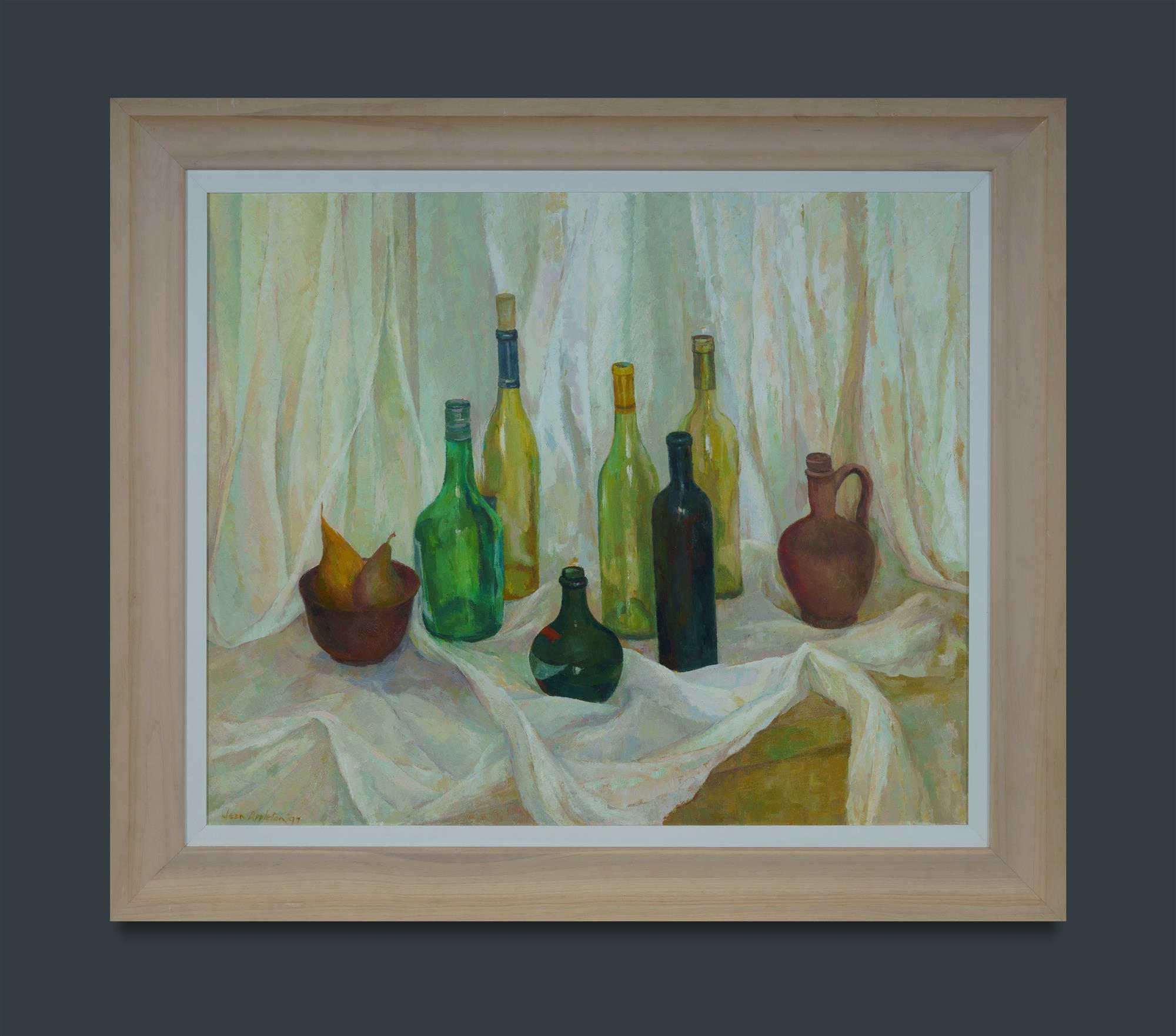 APPLETON, Jean (1911-2003) 'Bottles,' 1997. Signed lower left; titled and inscribed verso. Oil on Canvas 75.5x90cm PROVENANCE: The artist's daughter, Elisabeth Green. EXHIBITIONS: Jean Appleton, Artarmon Galleries, Sydney, 6th - 23rd May 2000, cat #1 (illustrated on invitation)Estimate $2,500-4,500