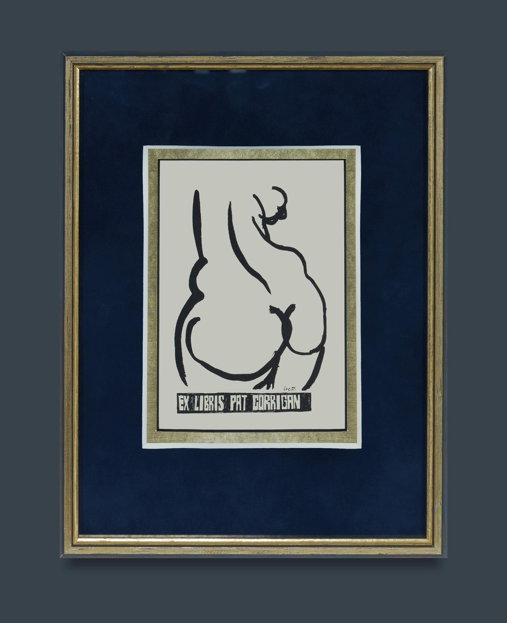 WHITELEY, Brett (1939-1992) Ex Libris Pat Corrigan Printed signature. Bookplate from an Original Ink Sketch 18x12cm OTHER NOTES: © Wendy Whiteley/Copyright Agency, 2024. Estimate $150-250