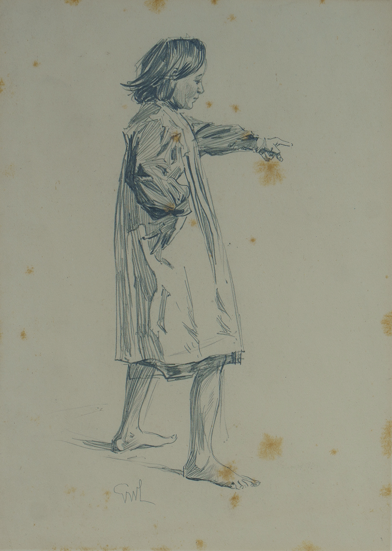 LAMBERT, George Washington (1873-1930) (3) 'Barefoot Girl', initialled lower left (20.5x14.5cm); 'First Corsage', initialled lower centre, 18x11.5cm (oval); and 'Day Dreaming', signed mid centre right (20x13.5cm) Pencil (3)