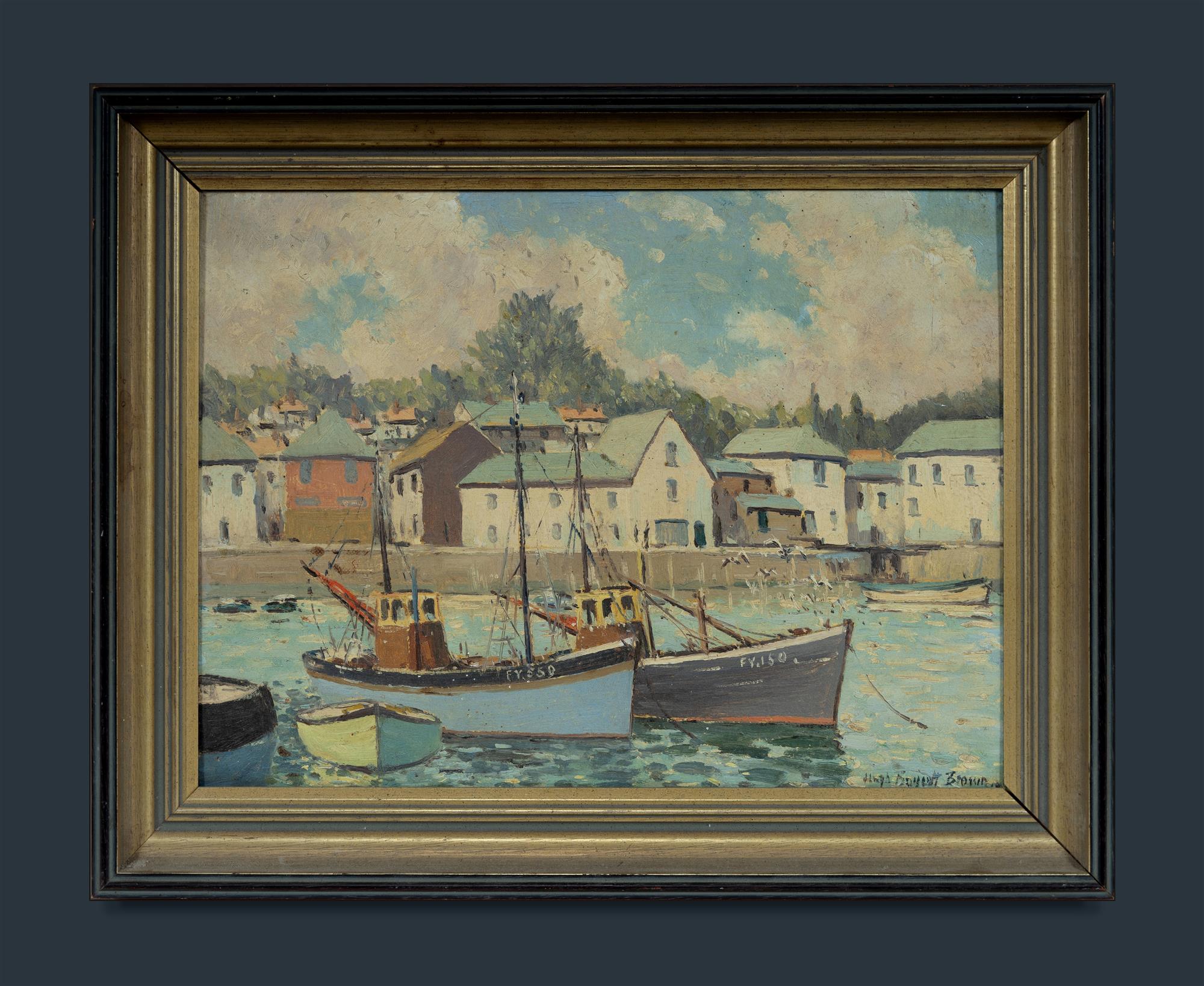 BROWN, Hugh Boycott (British 1909 - 1990) Seaside Village with Fishing Boats Signed lower right. Oil on Board 29x39cm PROVENANCE: Davidson Auctions, Sydney, 28th June 2015 (lot 262)Estimate $200-300