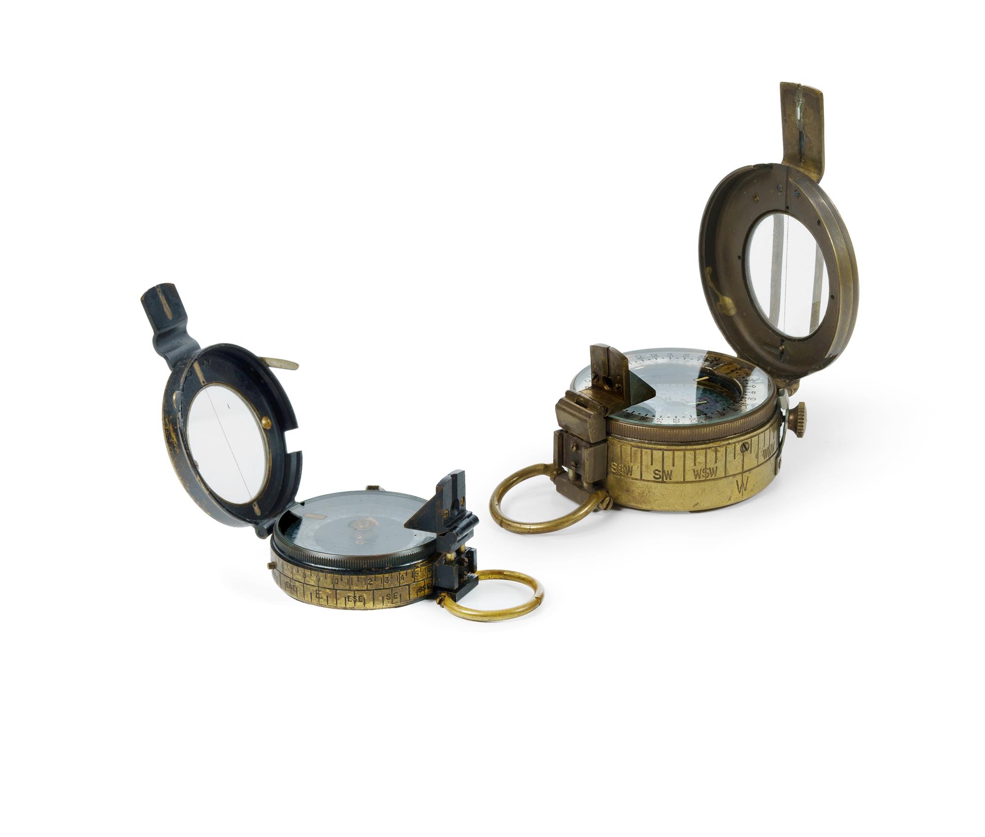 2 WWII Prismatic Compasses Includes Australian MK.IX, maker JW Handley of Melbourne, 1941; and MK.III by T.G & Co. of London, 1944.Estimate $150-300