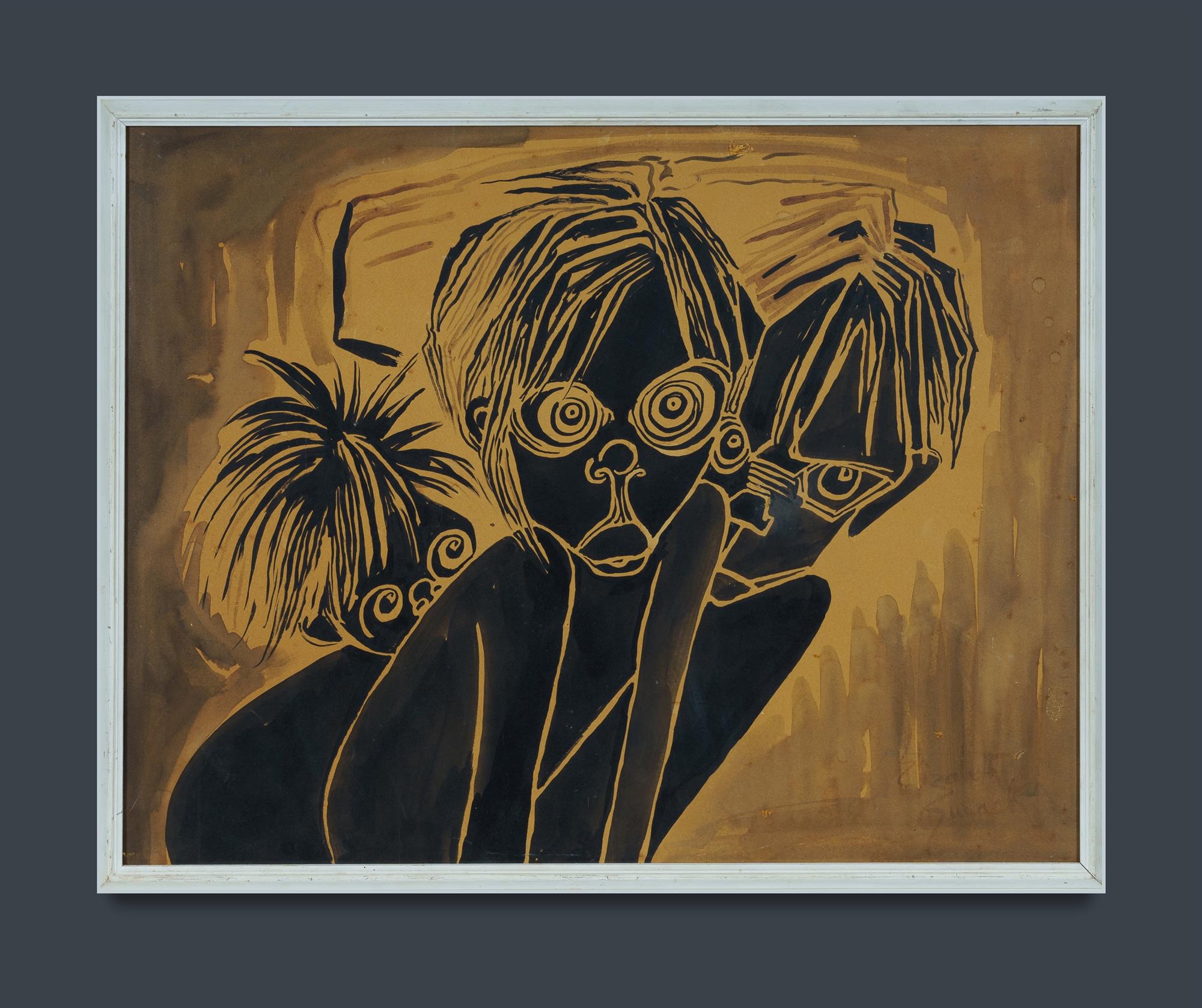 DURACK, Elizabeth (1915-2000) Untitled - Aboriginal Children Signed (faintly) lower right. Old label verso. Ink on Paper on Card 44x57cm PROVENANCE: The Fred and Elinor Wrobel Collection, Sydney; Estate Late Elinor Wrobel.Estimate $700-1,200