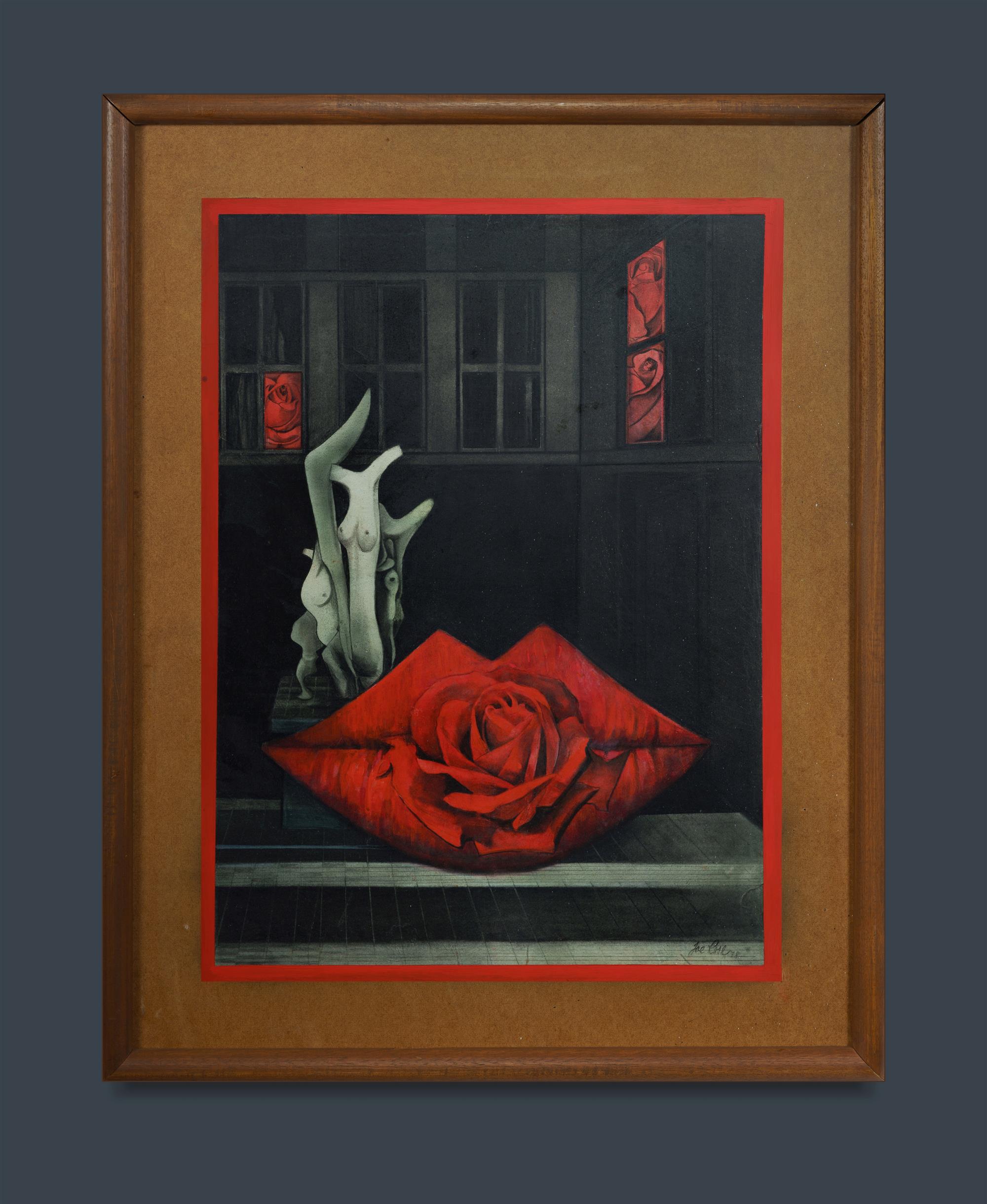 ROSE, Joe (1915-1999) 'Symbols of Love,' 1978. Signed lower right. Acrylic & Mixed Media on Paper on Board 59x43.5cm (image) 75x59.5cm (frame) PROVENANCE: The Fred and Elinor Wrobel Collection, Sydney; Estate Late Elinor Wrobel.Estimate $180-350