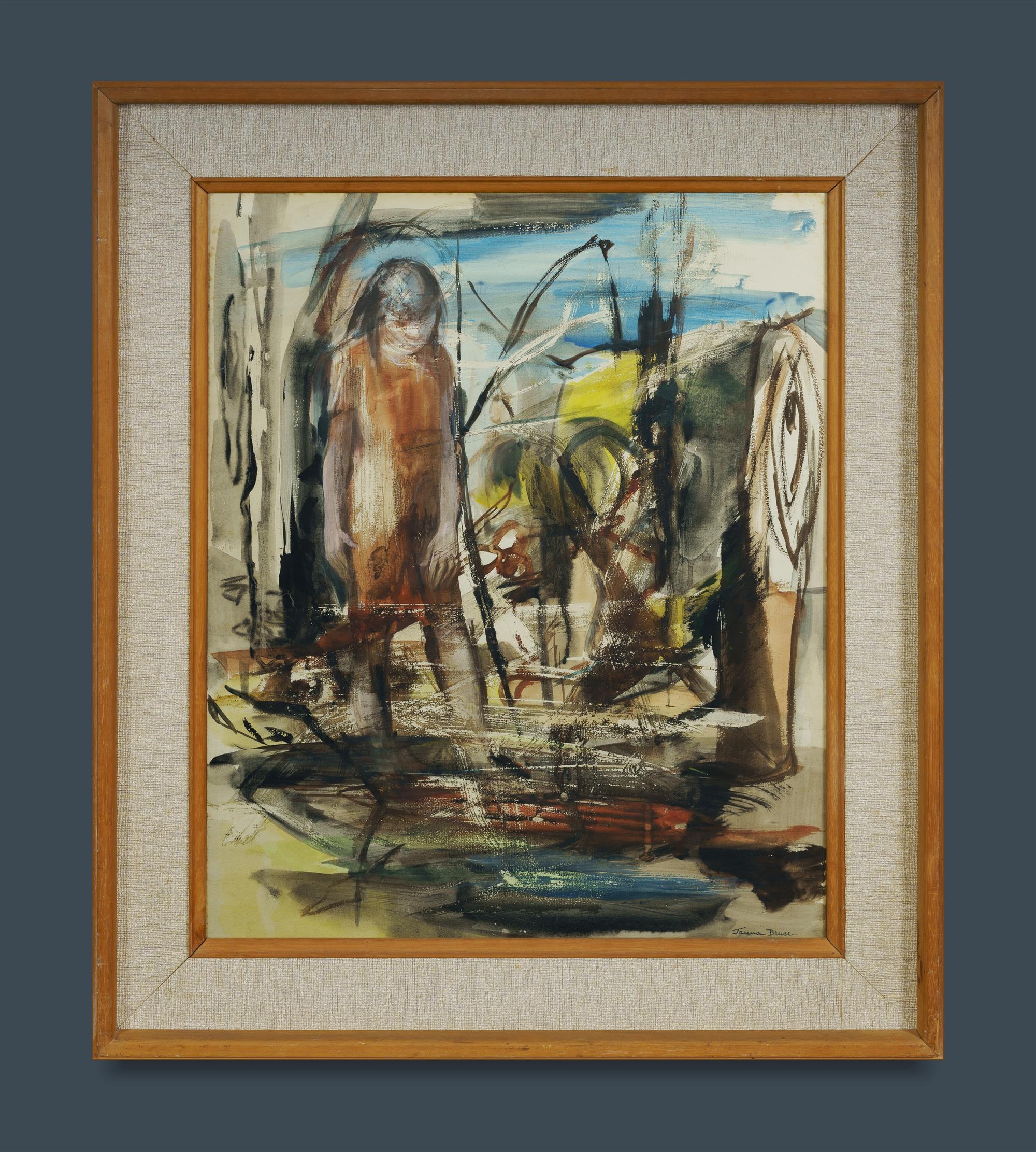 BRUCE, Alice Joyce (Janna) (b.1909-?) 'Girls by a Waterhole' Signed lower right; artist label verso. W/Clr & Ink 60x50cm PROVENANCE: The Fred and Elinor Wrobel Collection, Sydney; Estate Late Elinor Wrobel.Estimate $150-250
