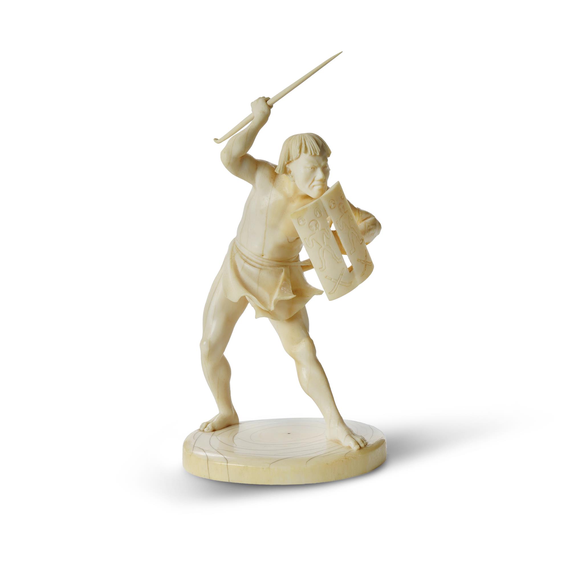 Japanese Meiji Period Ivory Okimono Well carved figure of a Dayak warrior. Signed to base. NB: ivory export restrictions (H18cm) Estimate $300-500