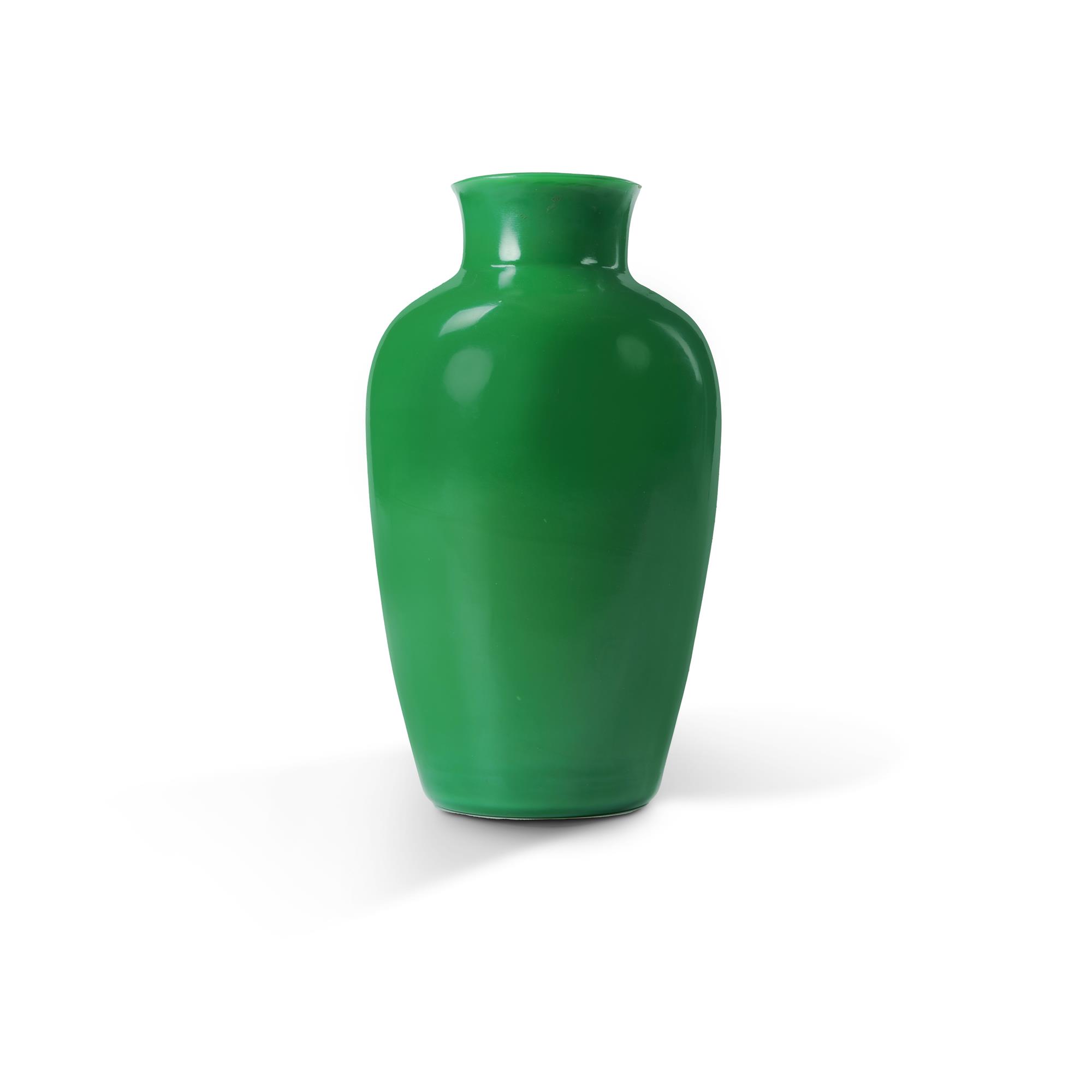 Republic Period Peking Glass Vase Jade green exterior with apple green interior. (H21.5cm)Estimate $200-400