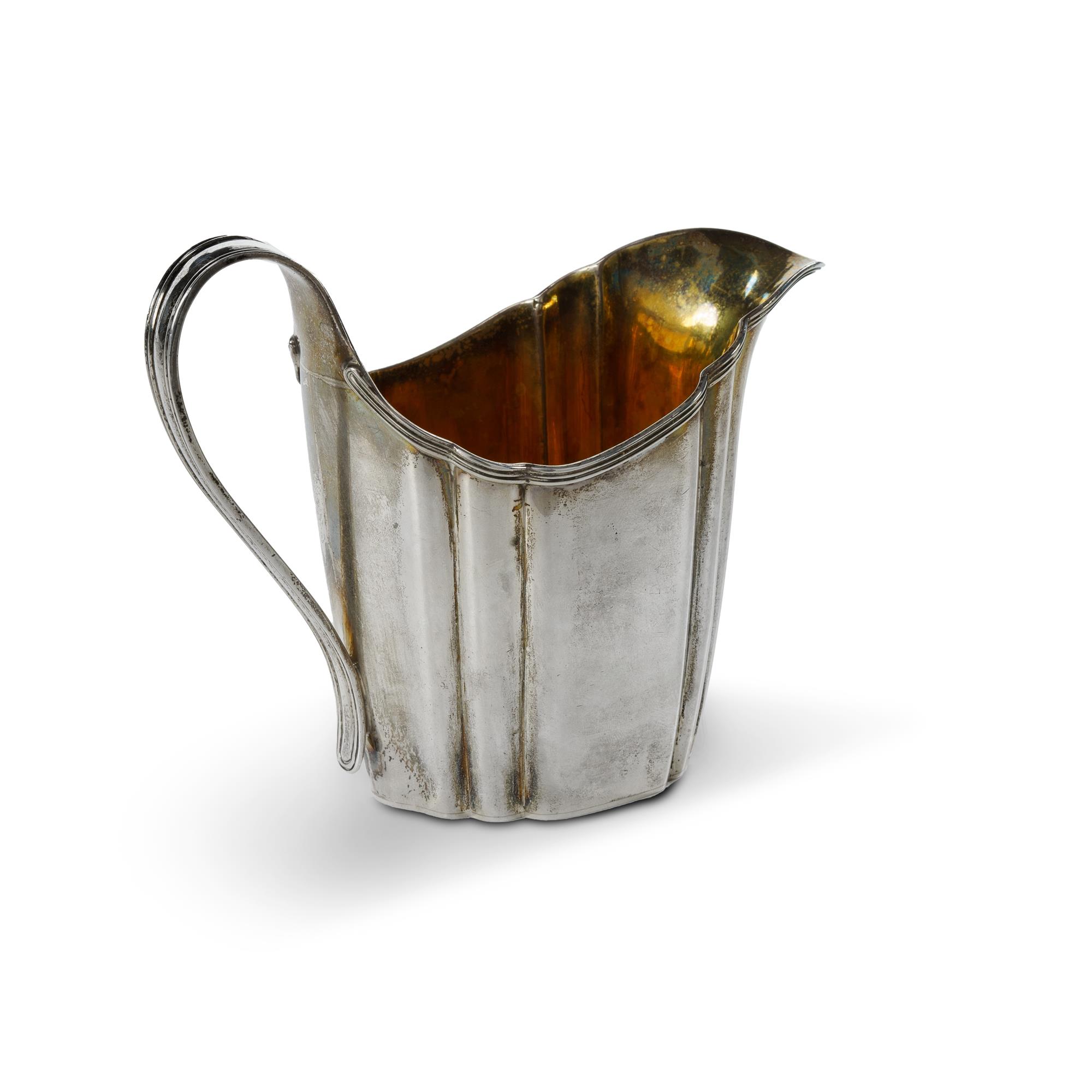Geo III Sterling Silver Sauce Jug HM London 1796, maker's mark illegible. Helmut form jug with gilt interior. Monogrammed. (H11cm W164-7g)Estimate $80-150