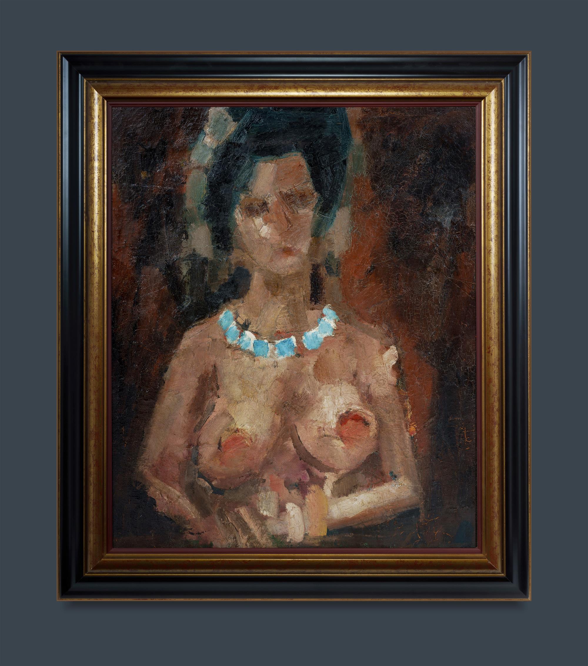 LYMBURNER, Francis (1916-1972) 'The Welsh Girl,' c.1959. Signed indistinctly lower right. Accompanied by signed card stating that this work was painted at St. Petersburgh Mews, off Moscow Road, London. Oil on Canvas 73.5x60.5cmEstimate $1,000-2,000