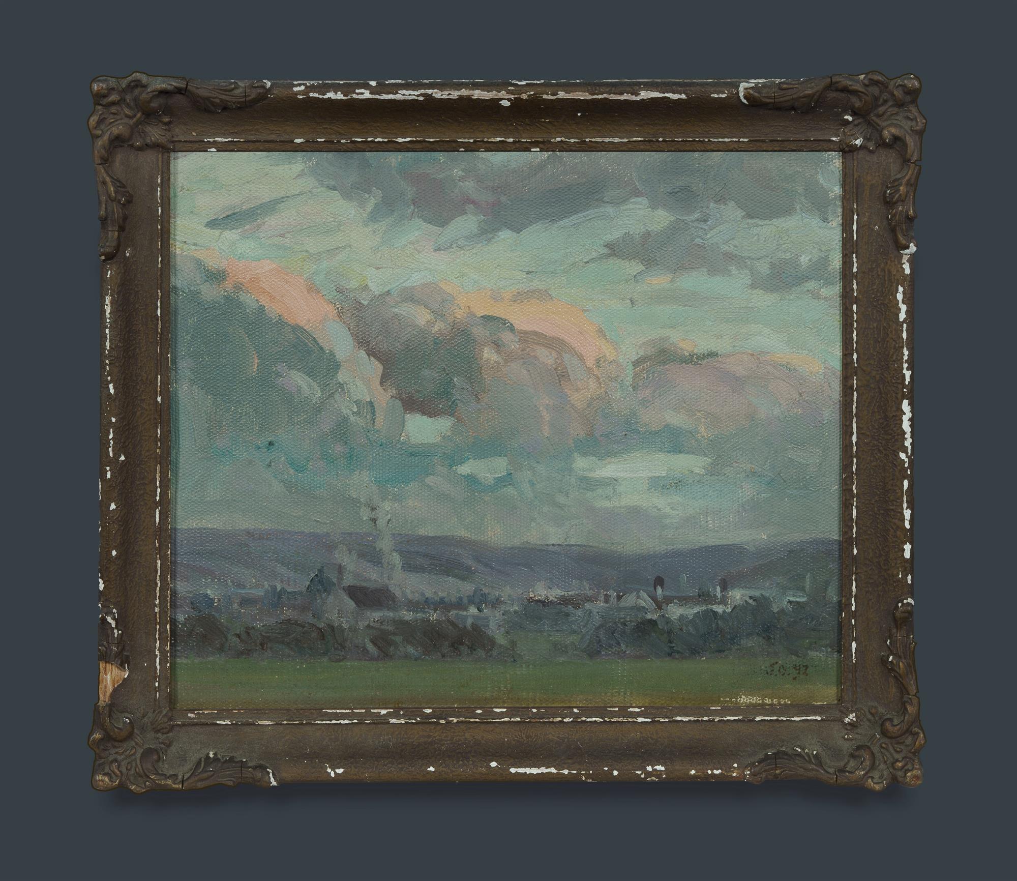 Attrib. OLSSON, Albert Julius (Julius) (British 1864-1942) Saint Erth, Cornwall, UK. Initialled J.O. lower right, and dated 92 (?) Attribution to Julius Olsson verso, in a later hand. Oil on Canvas 24x29.5cmEstimate $250-450