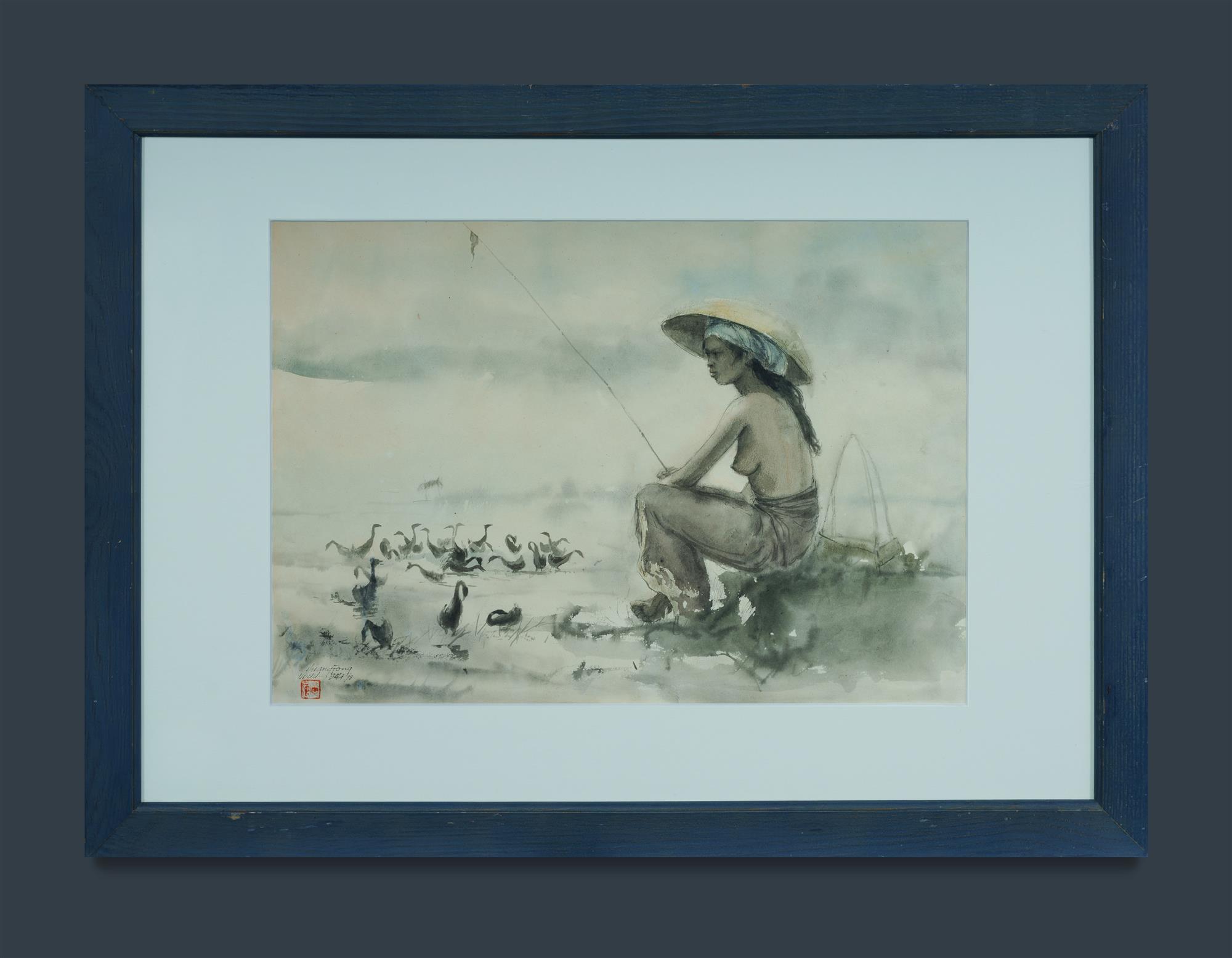 FONG, Huang (Indonesian 1936-2004) Ubud, Bali, 1975. Inscribed lower left, and with artist's seal. Ink & W/Clr 34.5x50cmEstimate $400-700