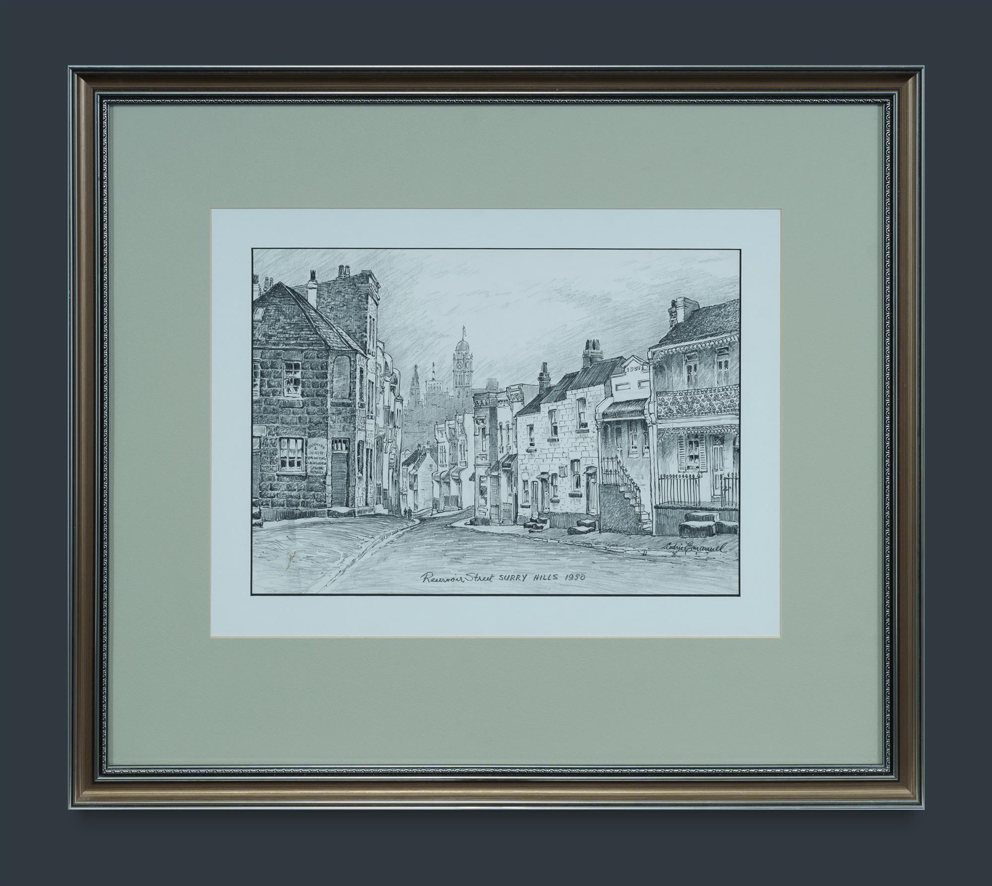 EMANUEL, Cedric (1906-1995) 'Reservoir Street, Surry Hills [Sydney] 1950' Pencil 25.5x36cm LITERATURE: Illustrated in 'Portrait of Sydney,' Cedric Emanuel.Estimate $150-250