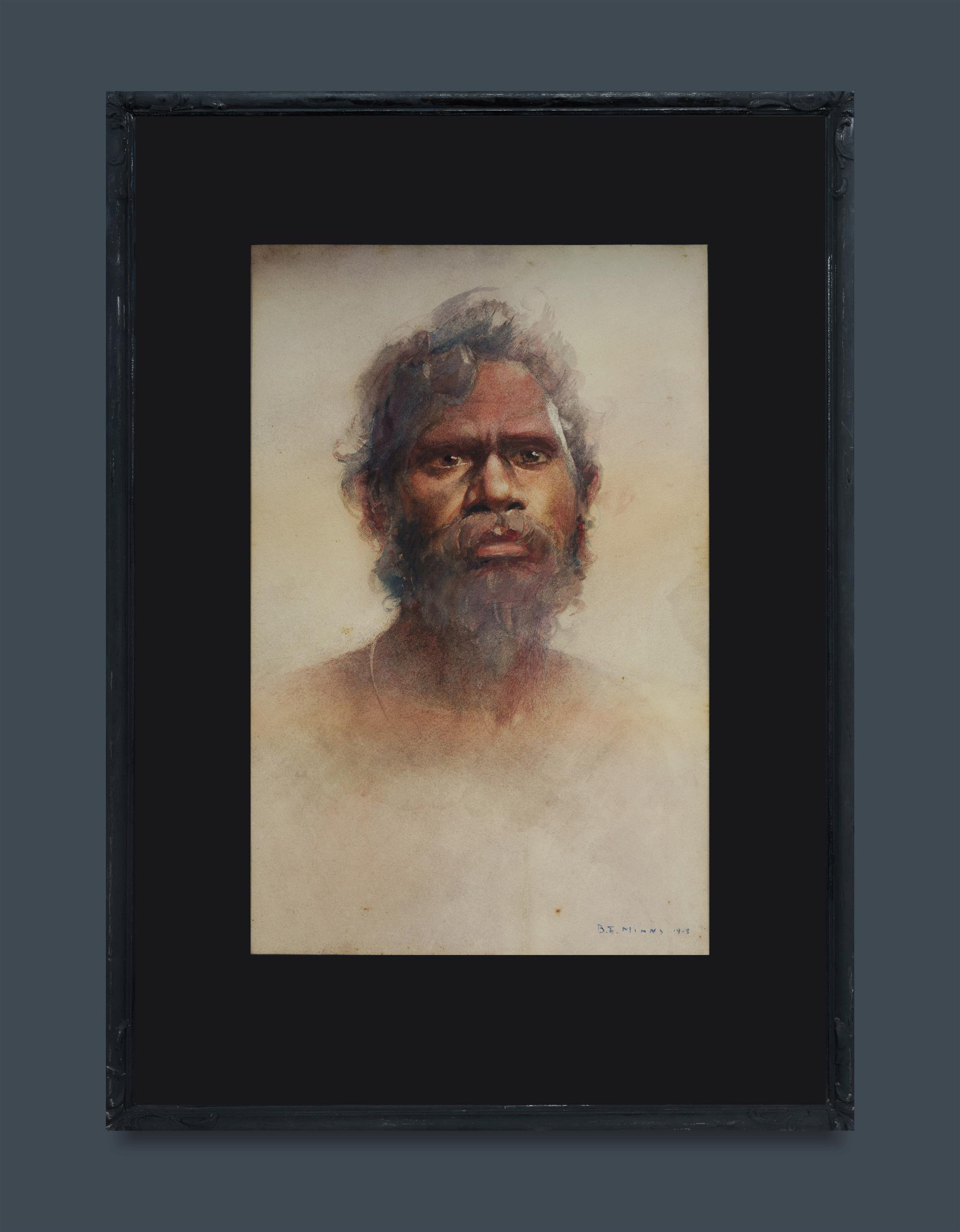 MINNS, Benjamin E (1864-1937) Aboriginal Portrait, 1918. W/Clr 50x32cm (sight)Estimate $1,000-2,000