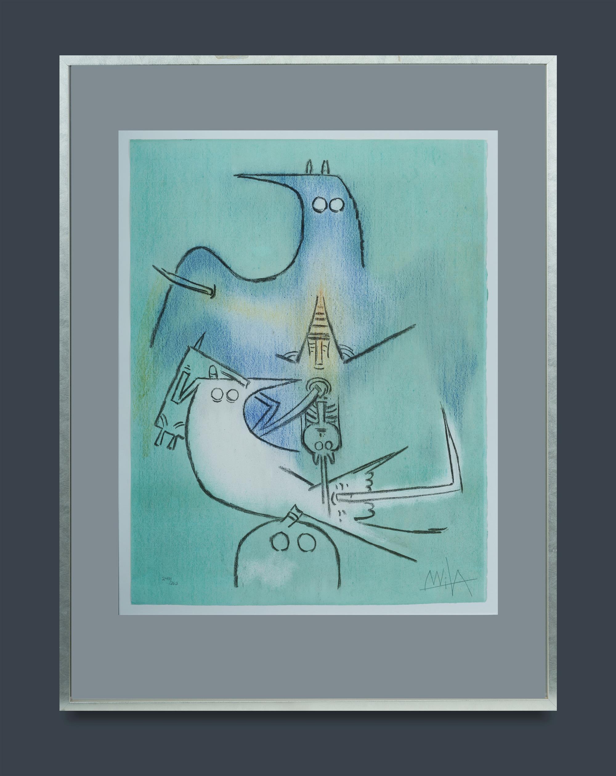 LAM, Wilfredo (Cuban 1902-1982) 'Arbre de Plumes,' 1974 (from Pleni Luna Portfolio) Signed lower right. Colour Lithograph 248/262 65x50cmEstimate $200-400