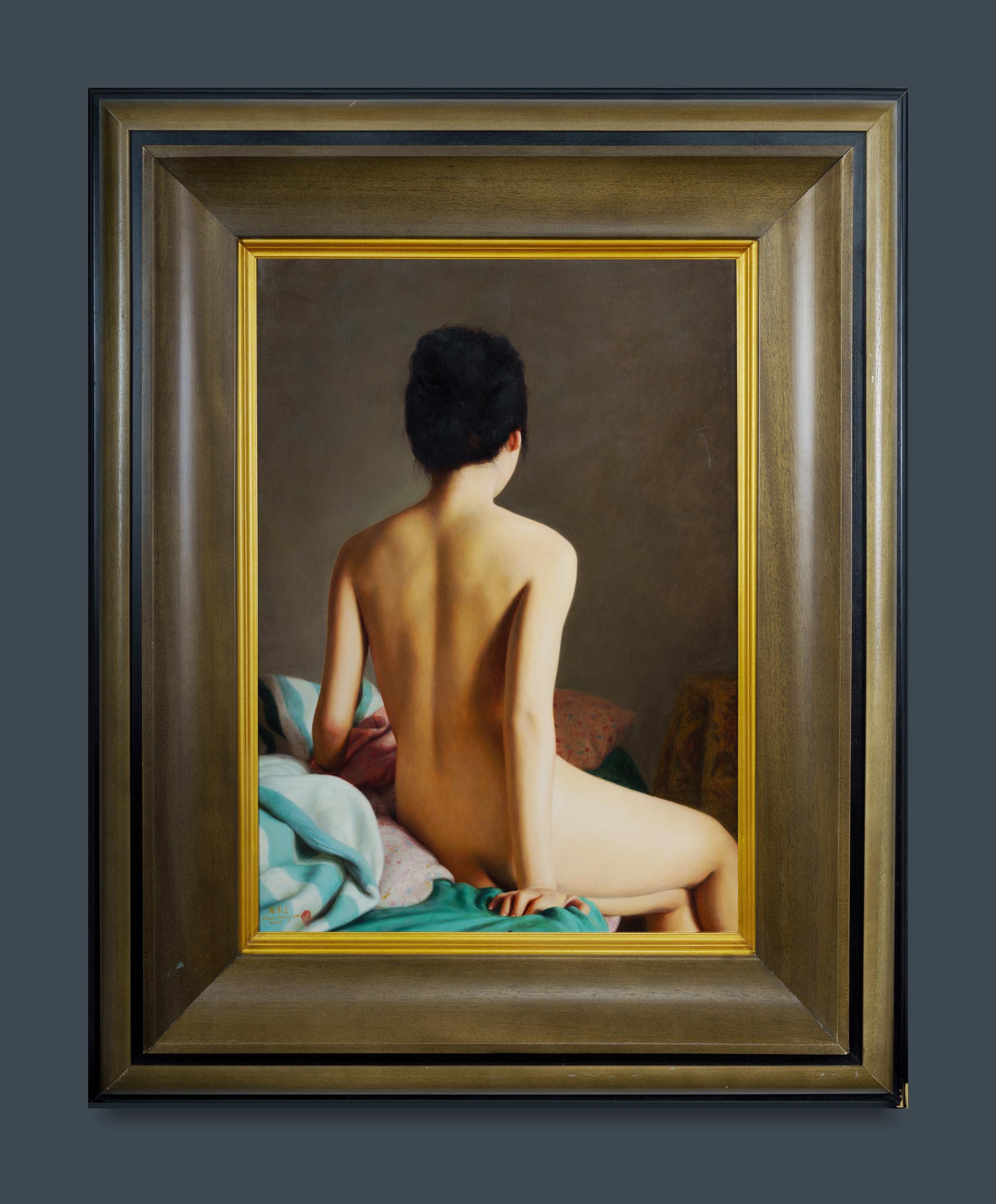 CHEN, Chengwei (Chinese b.1984) Nude, Back View, 2015. Signed and dated lower left including thumbprint. Oil on Canvas 70x50cm PROVENANCE: The artist; private collection, China and Sydney (purchased directly from the above); thence by descent (deceased estate)Estimate $3,000-5,000