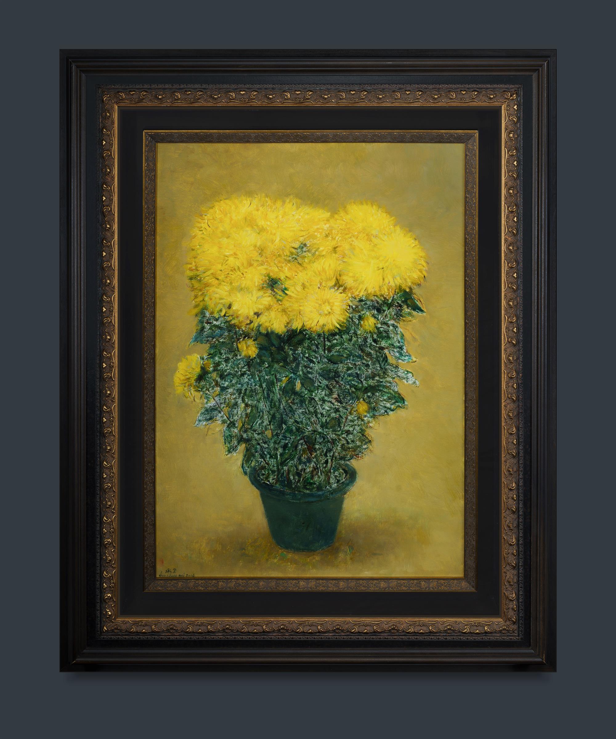 CHEN, Chengwei (Chinese b.1984) Yellow Flowers, 2016. Signed and dated lower left including thumbprint. Oil on Canvas 84x59.5cm PROVENANCE: The artist; private collection, China and Sydney (purchased directly from the above); thence by descent (deceased estate)Estimate $2,000-4,000