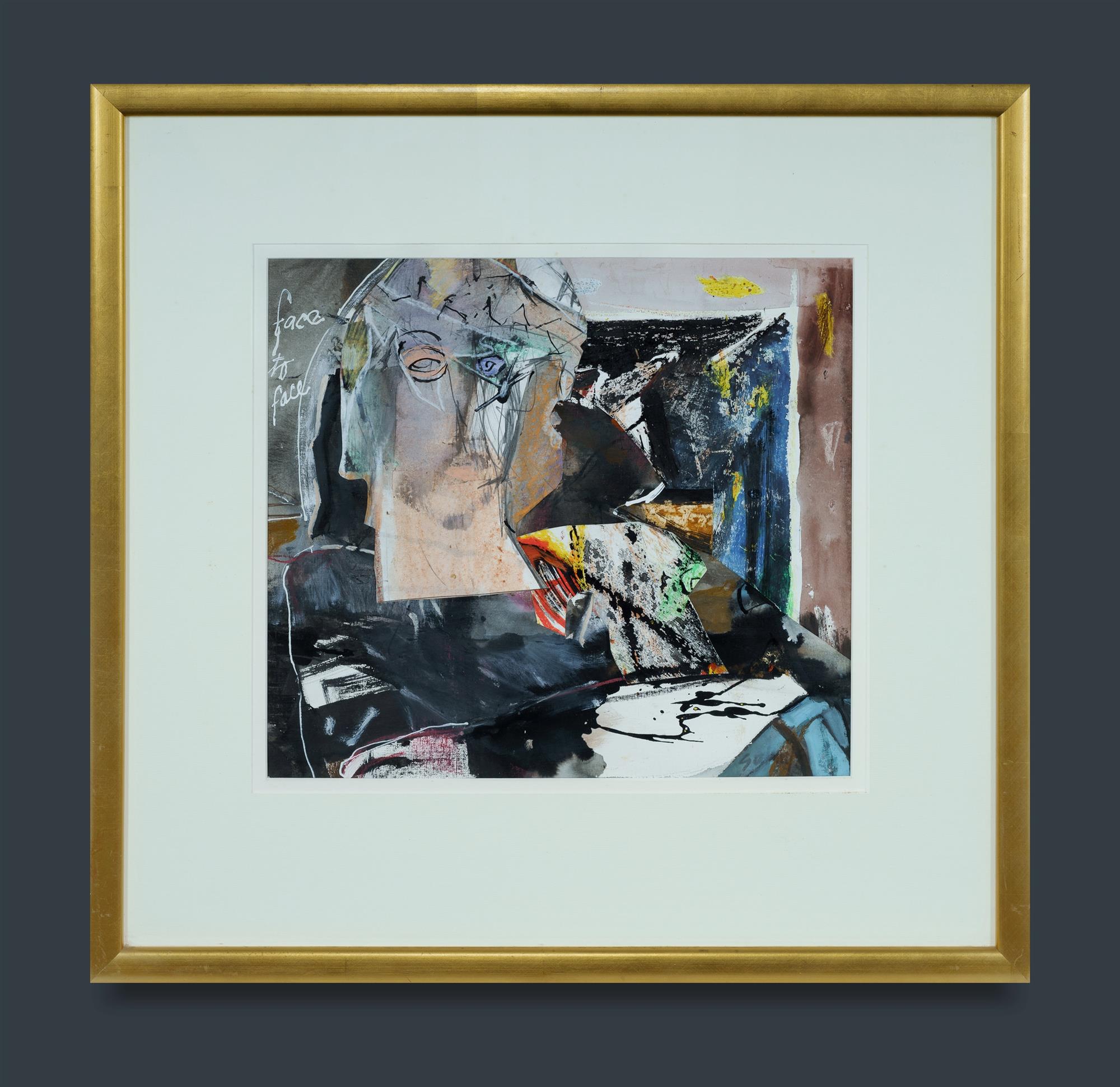 SALNAJS, Venita (b.1945) 'Face to Face' Mixed Media with Collage 37.5x42cm PROVENANCE: Estate Late Yvonne O'Hara-Close (artist Yve Close)Estimate $50-100