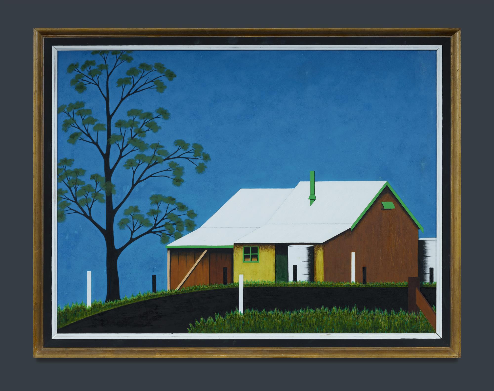 WATTERS, Max (1936-2020) 'House and Shed, Nundah,' 1977. Oil & Mixed Media on Board 56x74.5cmEstimate $1,500-2,500